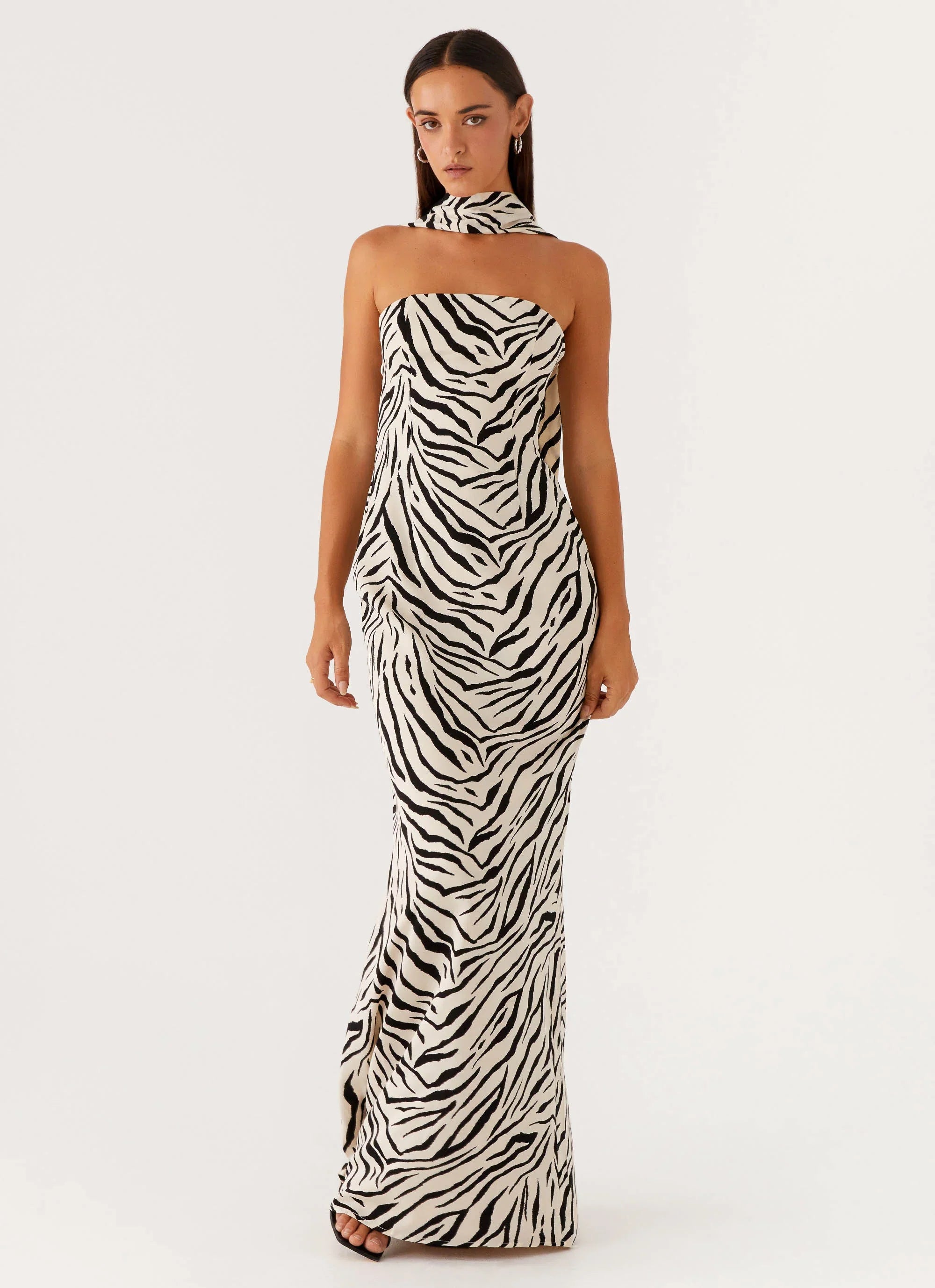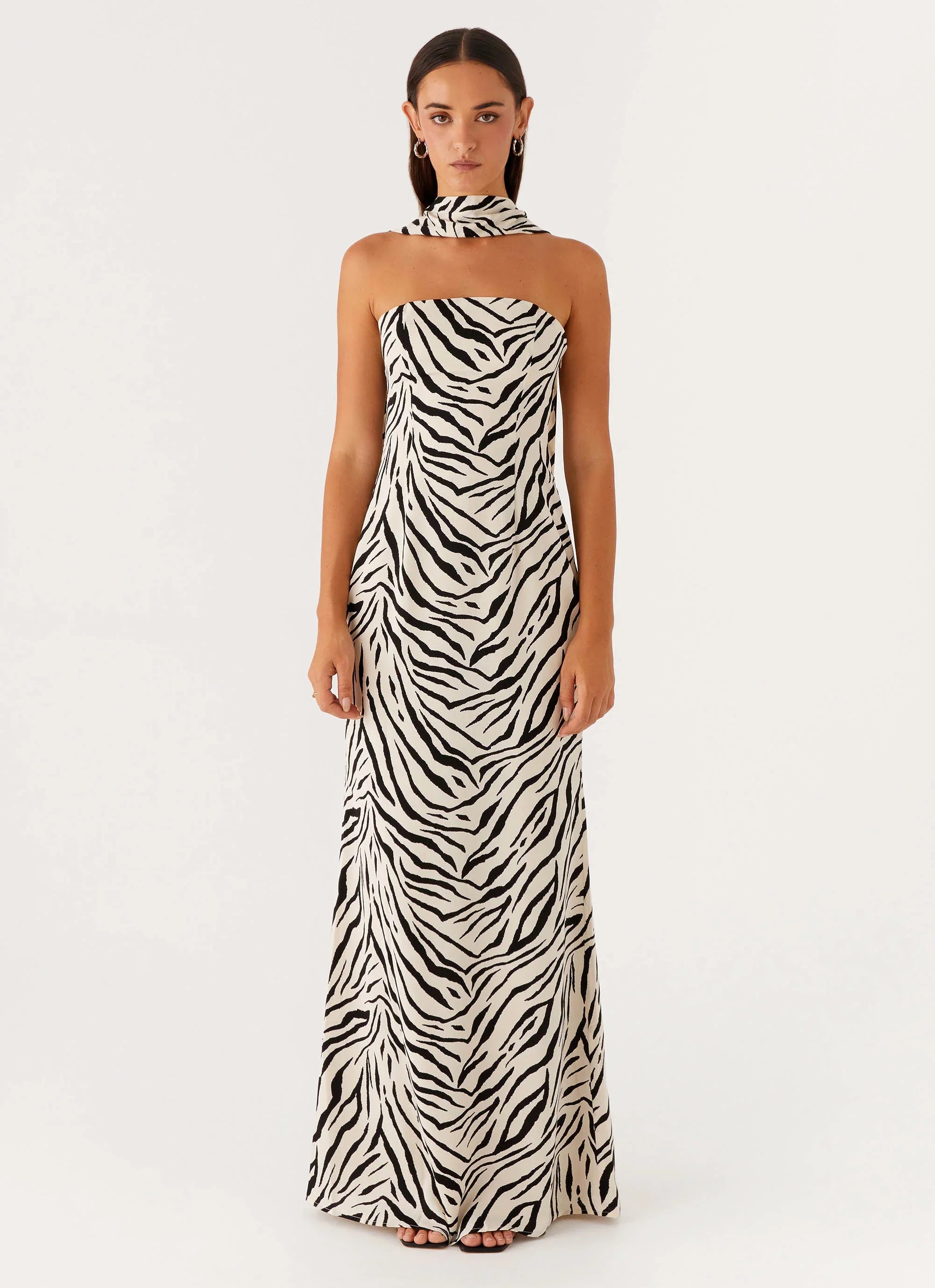 The Jigsaw Strapless Maxi Dress is the epitome of sleek sophistication. Featuring a chic strapless neckline and a statement neck scarf, it blends classic elegance with a modern edge. Fully lined for a flawless fit, this maxi dress flows effortlessly, making it perfect for golden-hour soirées and midnight moments alike.