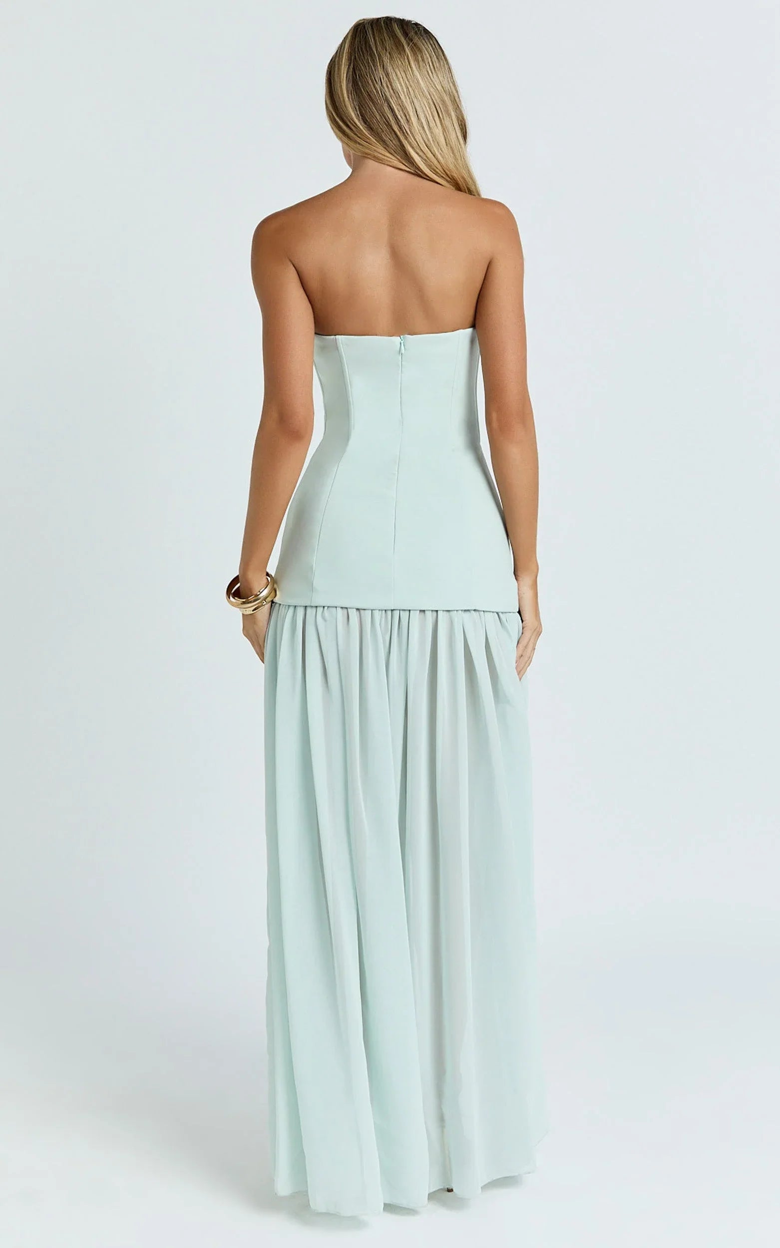 The sculpting bodice and flirty flare hem serve hourglass energy, while the fresh green hue keeps it playful and polished for parties, weddings, and nights out. Balletcore vibes meet modern elegance, think clean neckline, cinched waist, and a twirl-ready silhouette that photographs beautifully.