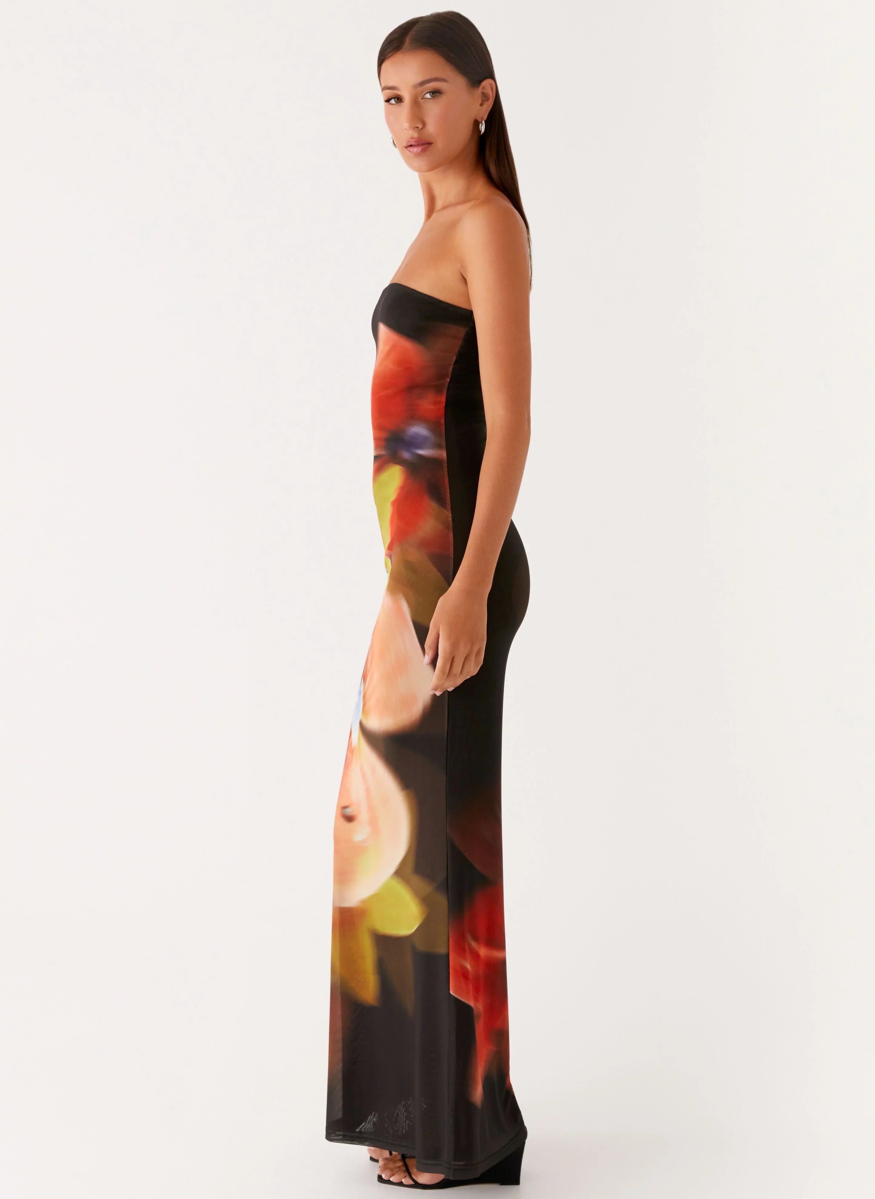 The Jorja Maxi Dress is made for nights that shimmer, featuring a strapless neckline and a flowing maxi length that moves effortlessly. Crafted from stretch mesh with a fully lined exclusive print, it captures the magic of golden skies and balmy evenings.
