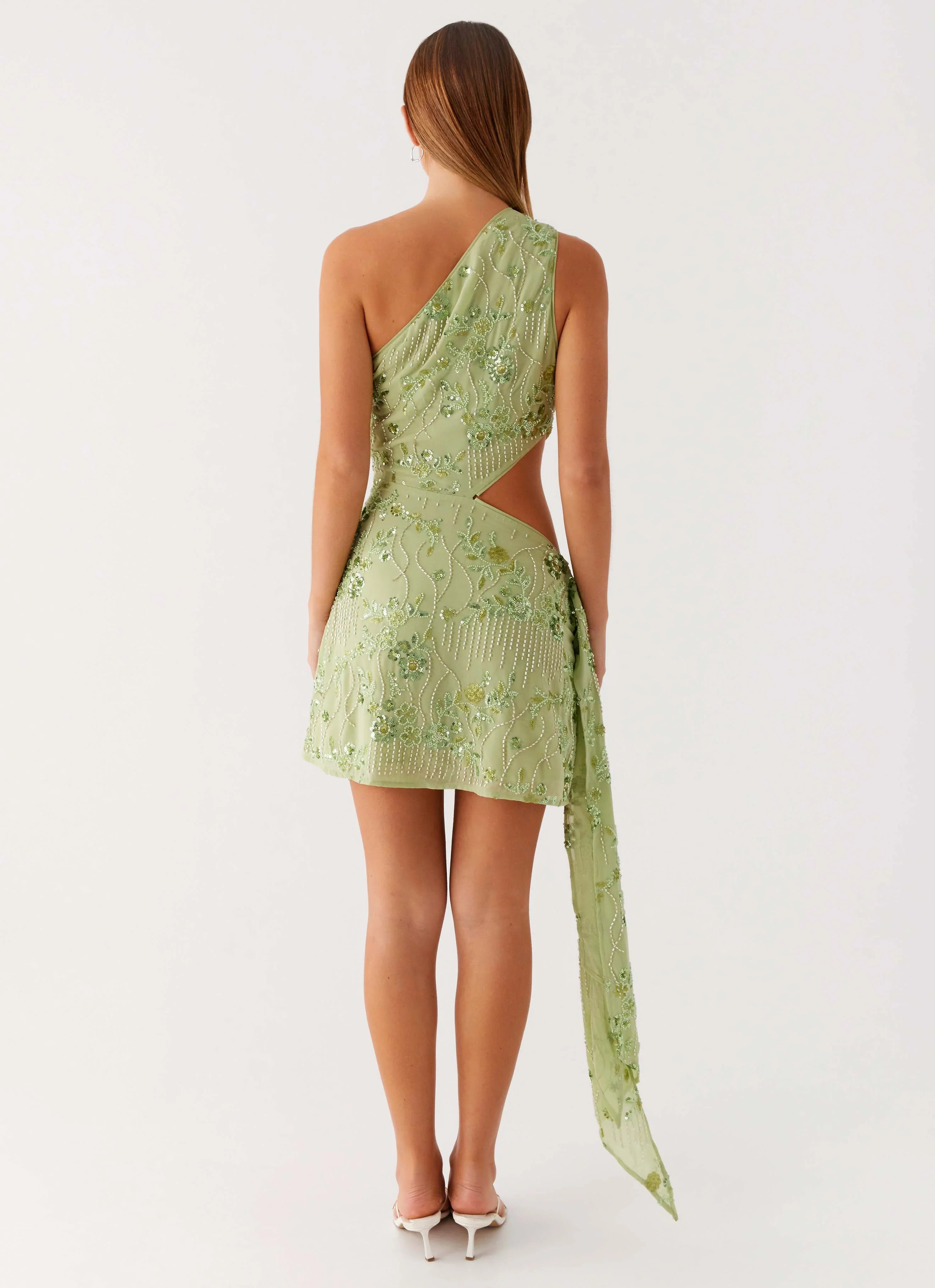 Turn heads from sunset to sundown in the Juelz Beaded Mini Dress. Drenched in lime-toned beaded material, this dazzling piece features a symmetrical neckline and bold side cut-outs for that perfect party silhouette. Beading placement will differ per garment, ensuring every look is one-of-a-kind.