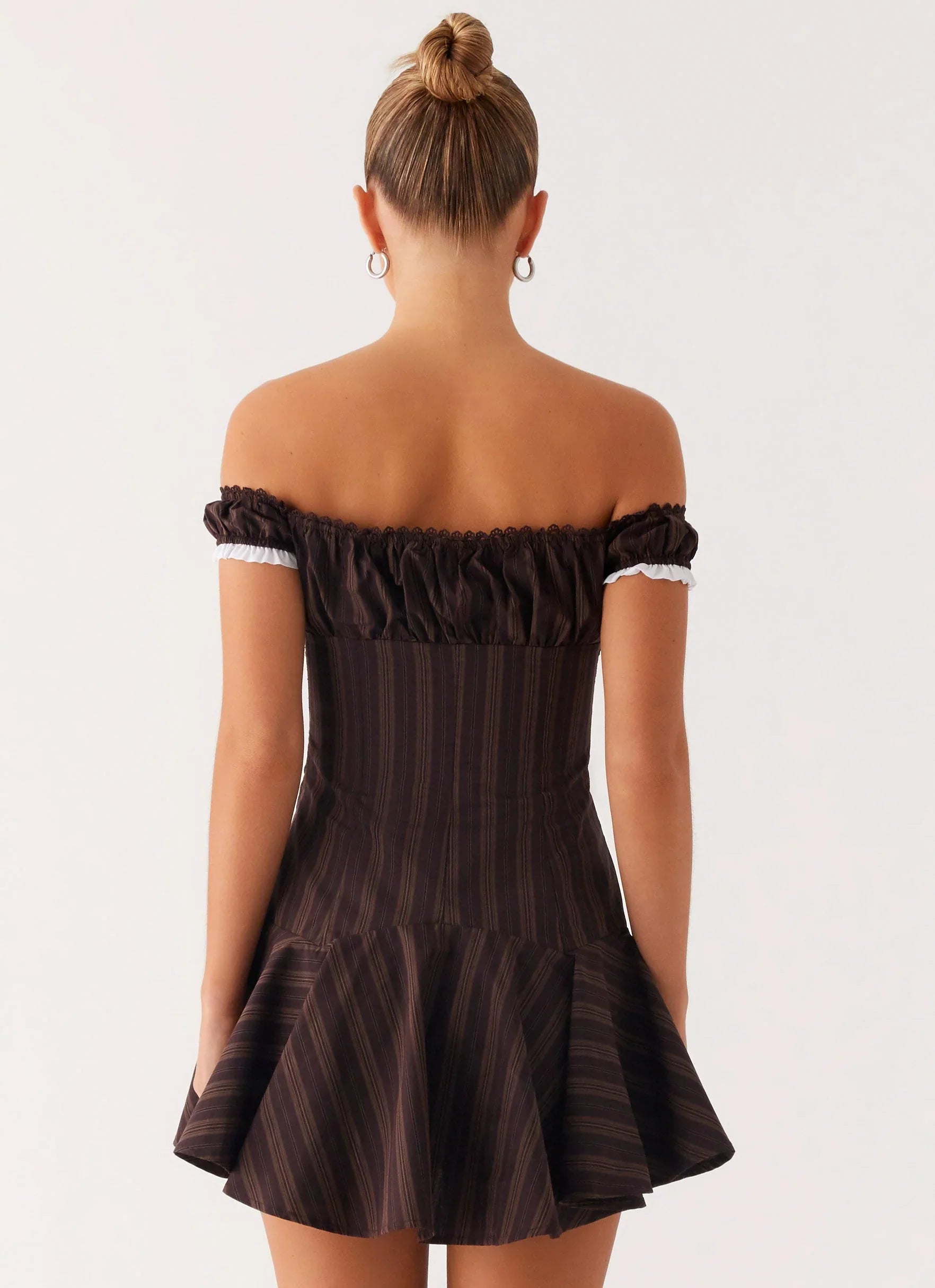 The Jumana Off Shoulder Mini Dress is a flirty take on classic charm. Featuring an off-the-shoulder neckline with elasticated cap sleeves and lace trim, this fully lined dress is finished with a fitted bodice, flared skirt, and our exclusive print for effortless after-dark style.