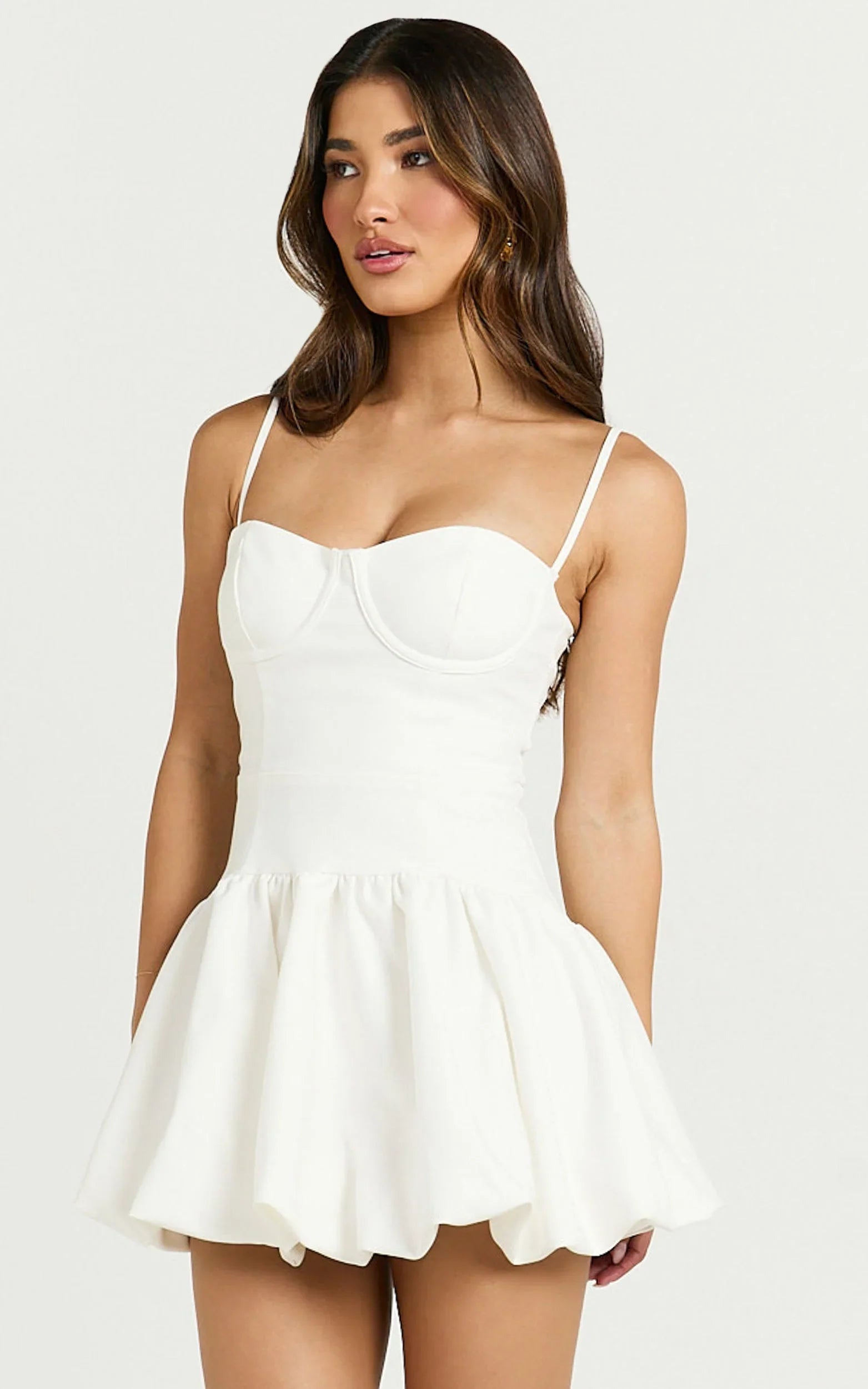 Make a statement in the Kacey Mini Dress, an unforgettable piece that defines elegance and fun, all rolled into one. Crafted in a luxurious off-white hue, this dress is the epitome of chic versatility, ready to take you from a radiant day celebration to an enchanting evening affair.