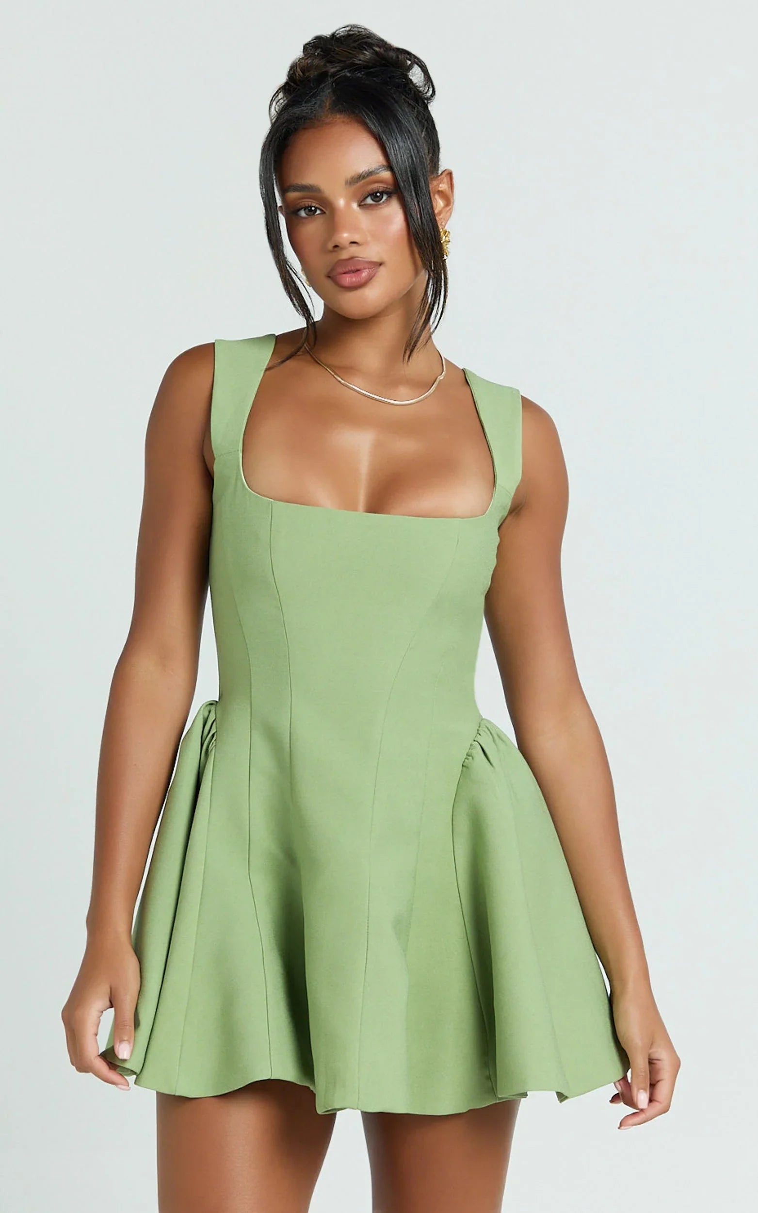 A wide strap square neckline frames the decolletage, while the tulip skirt adds flirty movement that’s ready for anything on your calendar. Think easy, throw-on-and-wow Dresses energy with just the right amount of twirl.