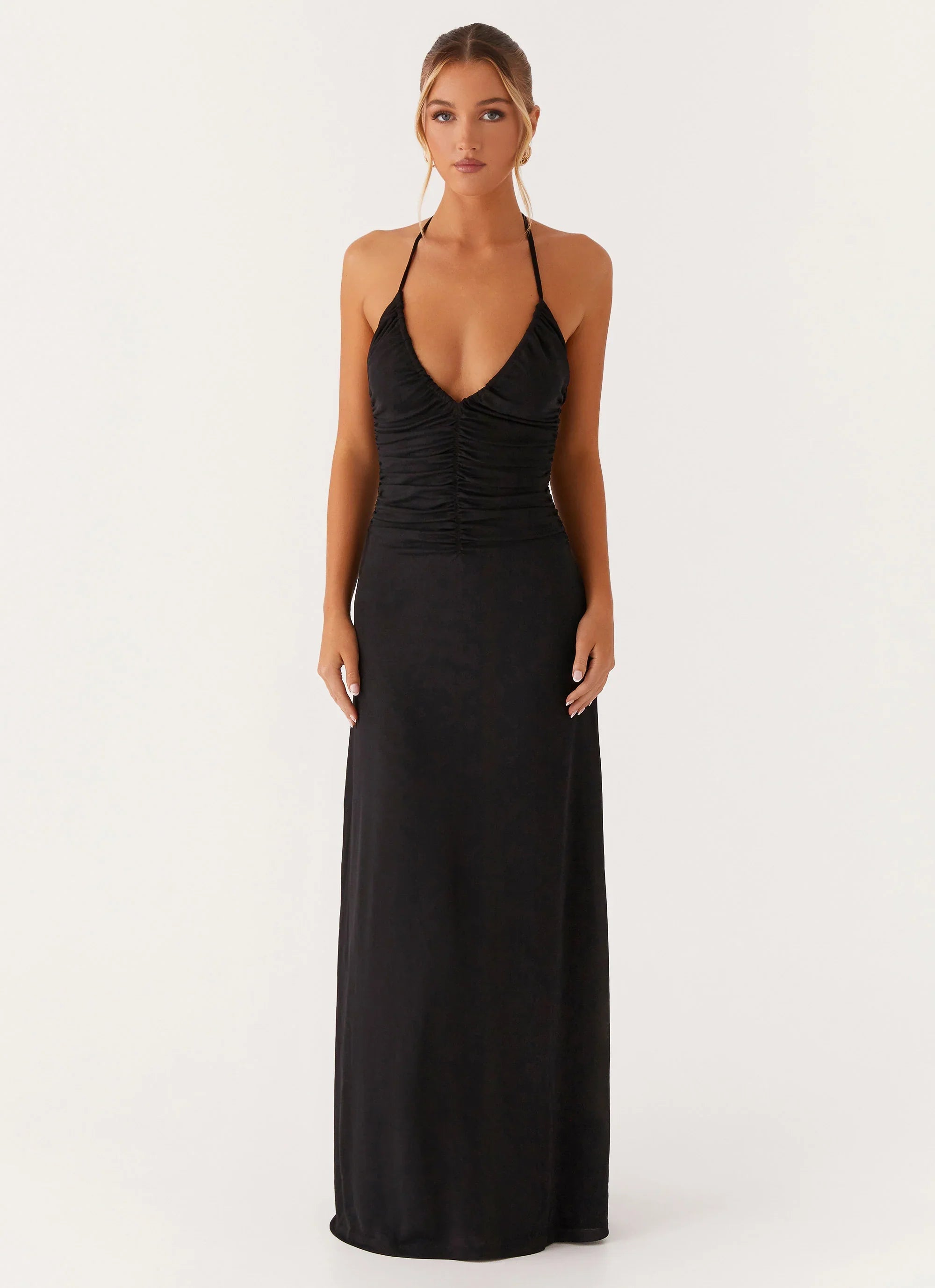 The Kansas Maxi Dress is the embodiment of effortless elegance. With a low V neckline that accentuates your décolletage and a flowing maxi length, this dress is perfect for those balmy nights out. The ruched neckline adds a touch of sophistication, making it an essential piece for your evening wardrobe that shines from sunset to sundown.