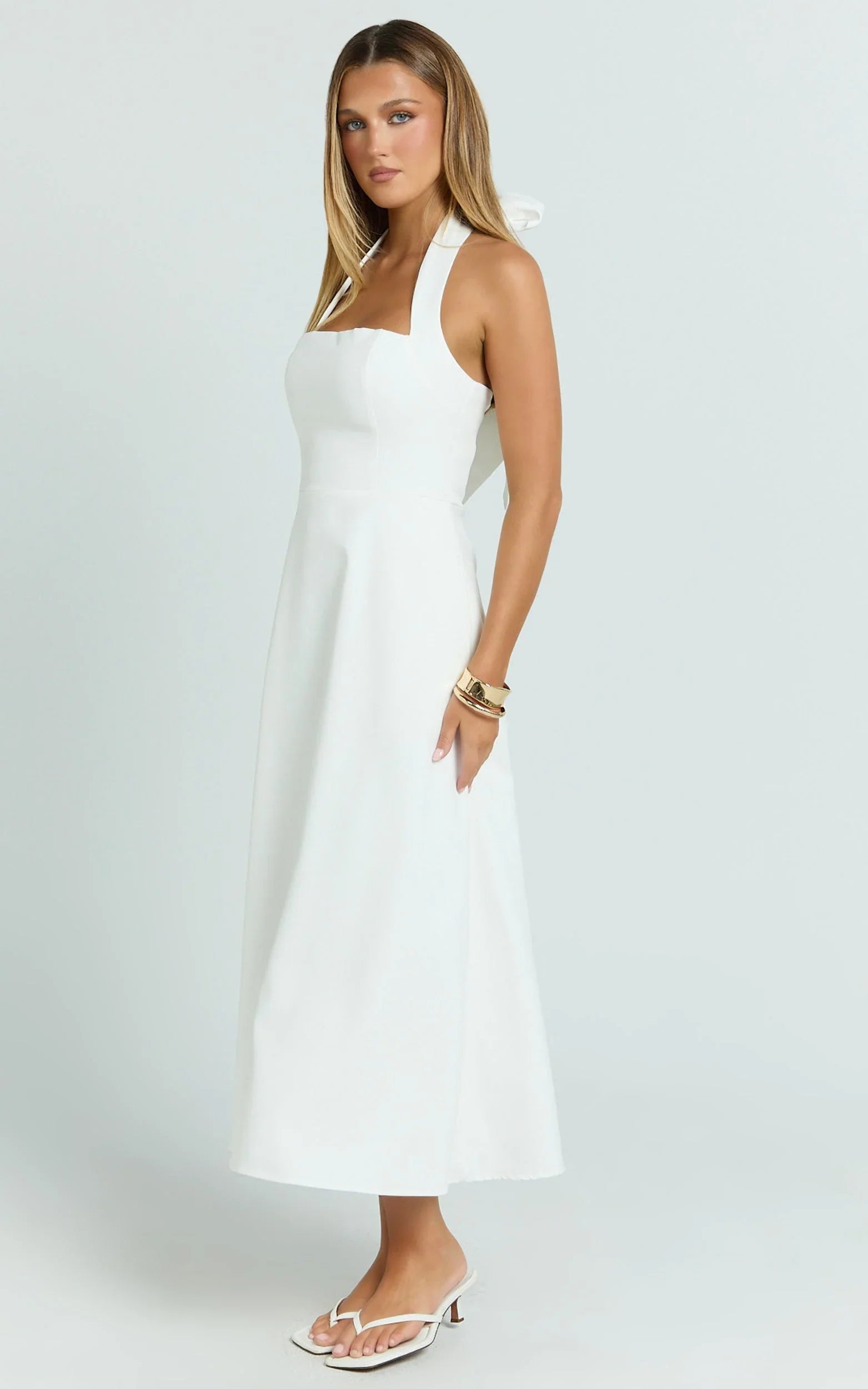 Karissa Midi Dress nails the balance of romantic and refined, making it the kind of Dresses piece you’ll wear on repeat. Style it minimal with pendant necklaces and oversized sunglasses for daytime polish, then switch to statement cuff bracelets and sleek heels for after-dark. Your new white-out moment, sorted.