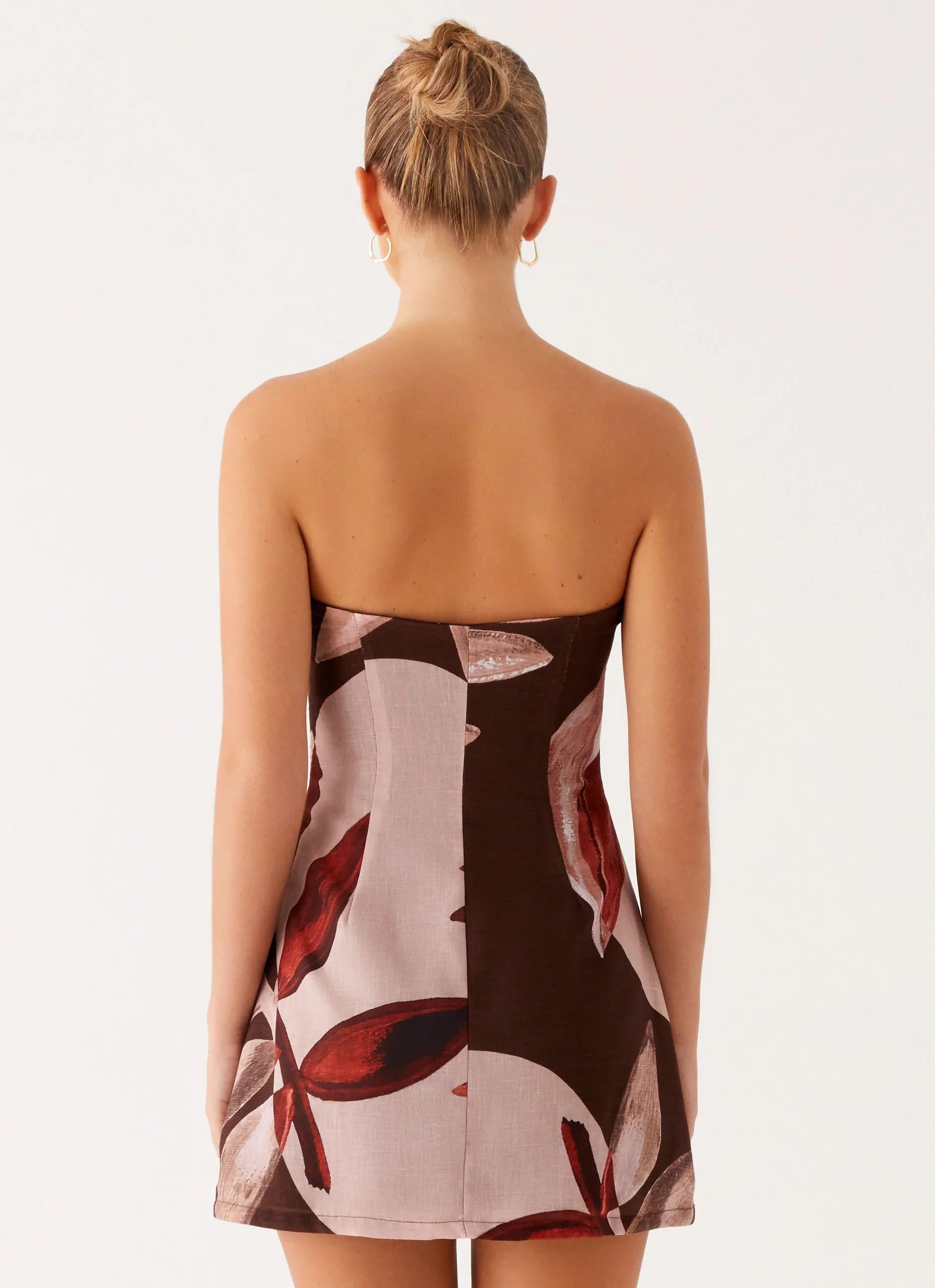 The Kellen Mini Dress is your go-to for effortless statement style. Featuring a strapless neckline with silicone taping for support, this fully lined silhouette is cut in our exclusive print—each piece uniquely placed. A side hook-and-eye and invisible zipper complete the polished finish.