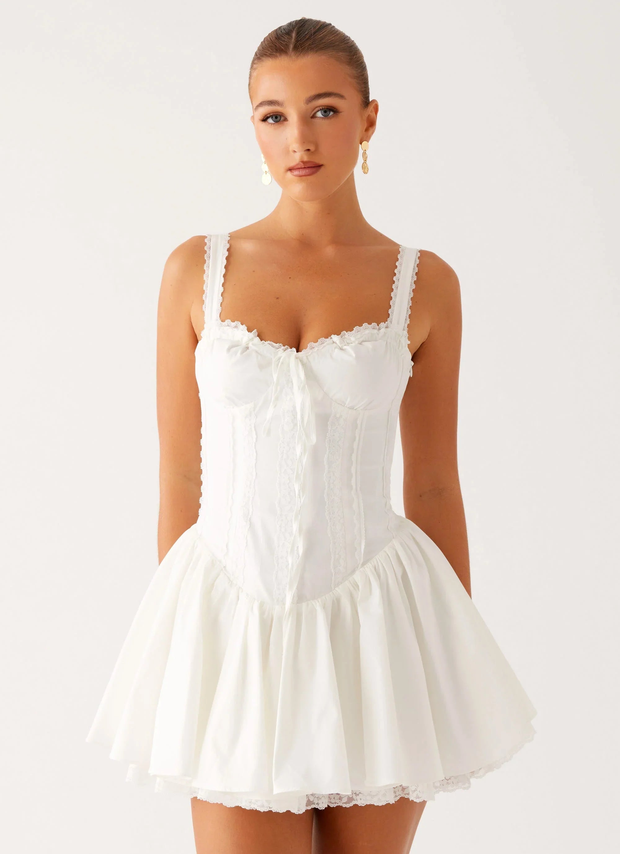 Sharp and sleek, the Lacie Mini Dress commands the night. With a straight neckline, corset back, and bold bonding details, this mini is made for those who own every moment from dusk till dawn.