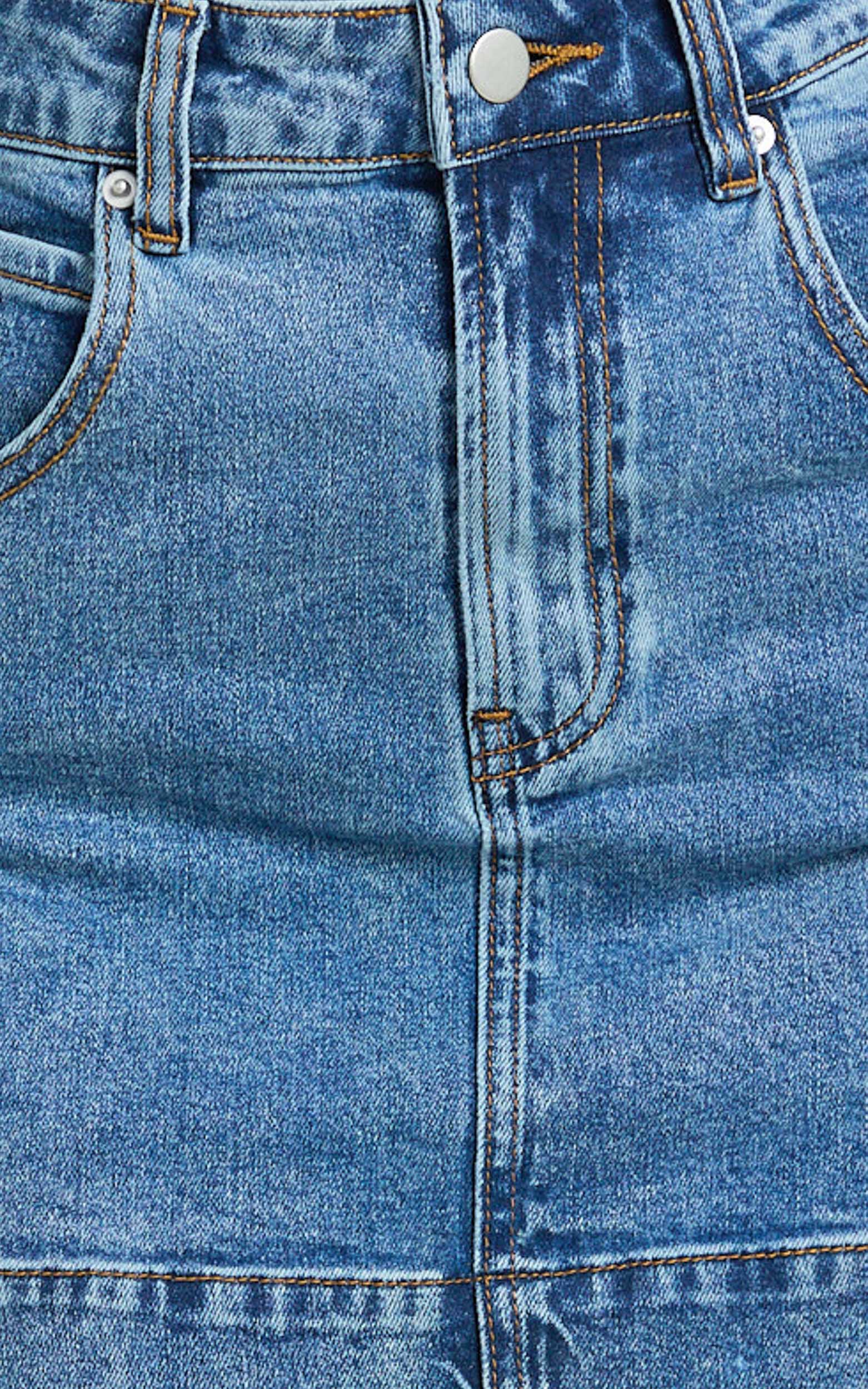 This dark blue wash brings that cool, lived-in vibe to your rotation while nipping in the waist for a snatched silhouette and instant sex appeal. Short, sleek and ready for anything, it pairs perfectly with a white tank top for off-duty ease or a heeled flip-flop to dial up the vibe from brunch to big nights. Consider it your new go-to for Skirts that do the most.