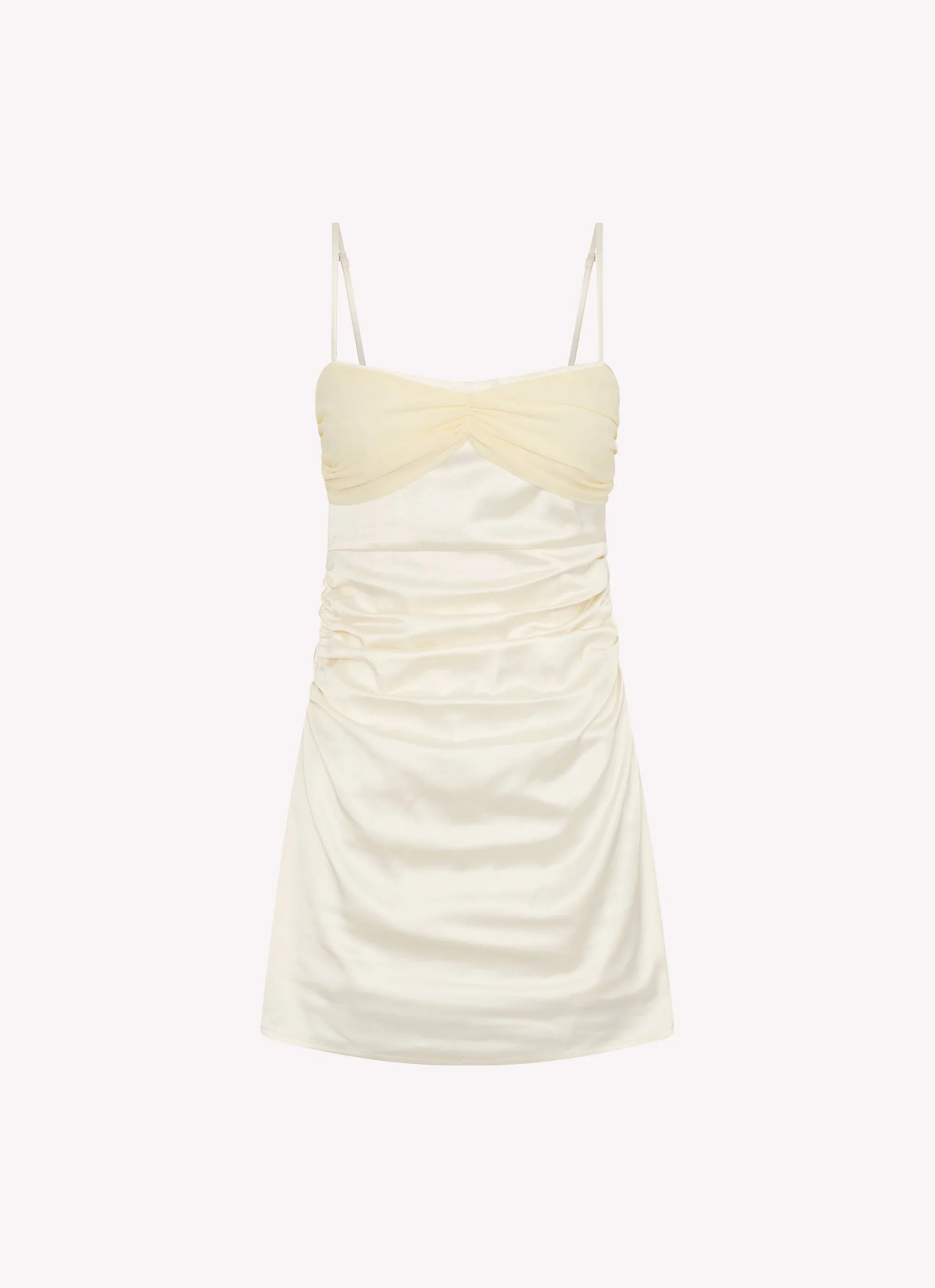 The Last Summer Mini Dress captures the essence of effortless chic with its straight neckline and flattering ruched bustier detailing. Fully lined for a comfortable fit, this dress is perfect for warm nights out, ensuring you shine in every moment.