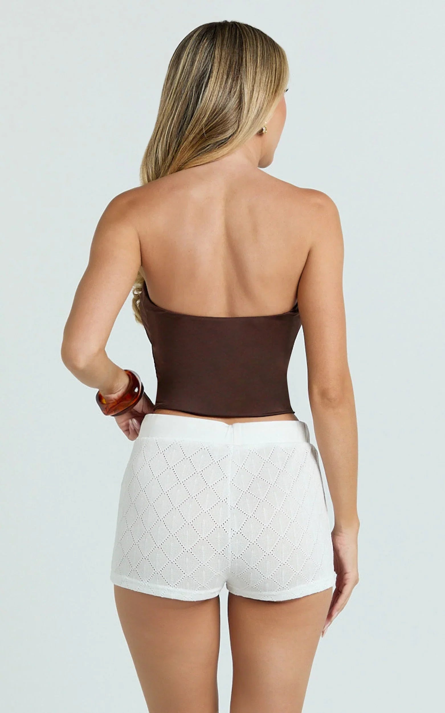 The Laurel Shorts in Off White bring that textured-but-effortless vibe your wardrobe’s been waiting for. The off-white hue keeps things minimalist and easy to style, while the comfy drawstring waist and cheeky mini cut add a fun, flirty edge. Pair them with a fitted crop and strappy sandals for an easy weekend fit, or layer with an oversized button-up for a relaxed boho moment. Laurel Shorts are your go-to when denim feels too basic, but you still want something wearable. Dress them up with a sleek bodysuit and layered gold jewellery, or keep it laid-back with a simple tee and slides. From beach days to festival plans, these crochet shorts nail that chic-meets-playful energy every time.