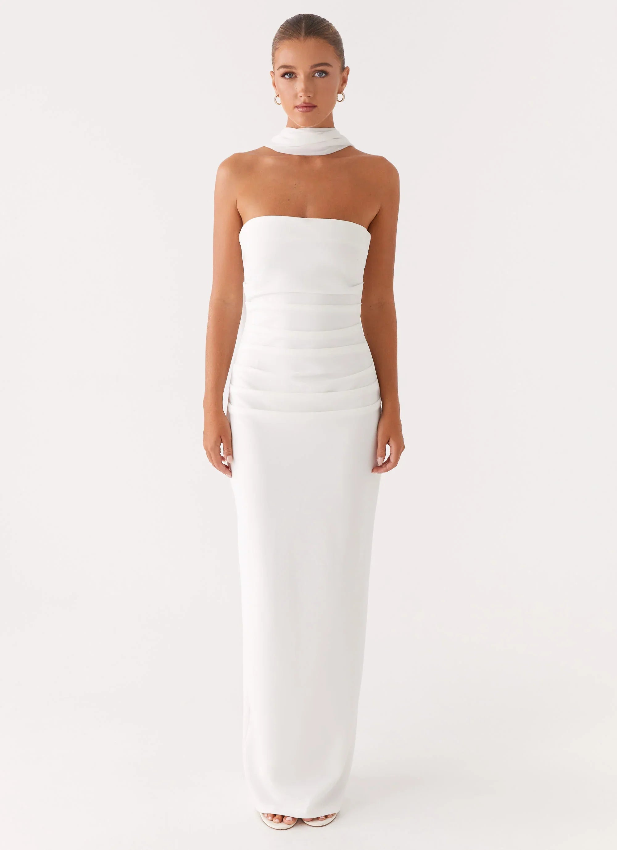 The Libra Maxi Dress is a stunning combination of style and comfort, featuring a strapless neckline and made from stretchy material that hugs your curves in all the right places.