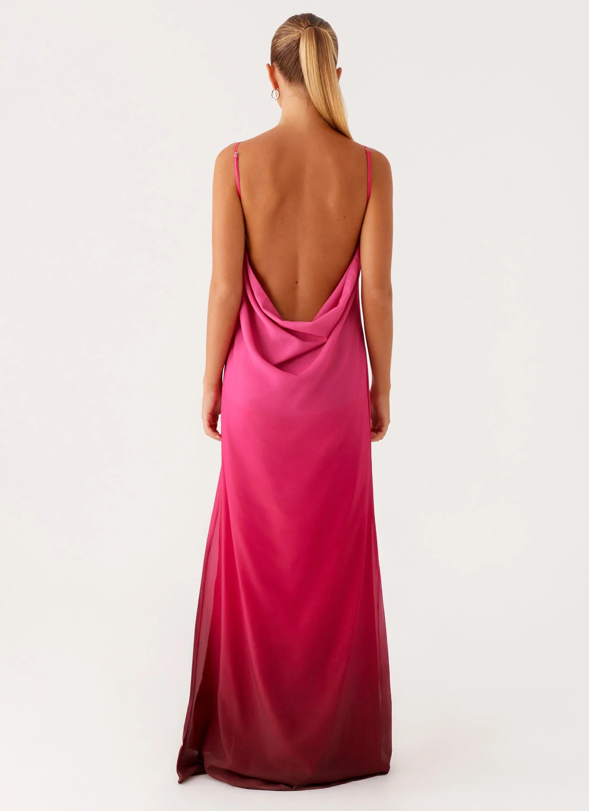 Marianne Maxi Dress featuring a square neckline and a low back cowl. Designed for effortless elegance, this dress flows beautifully with a timeless silhouette. Perfect for sunset soirées and elegant nights out.