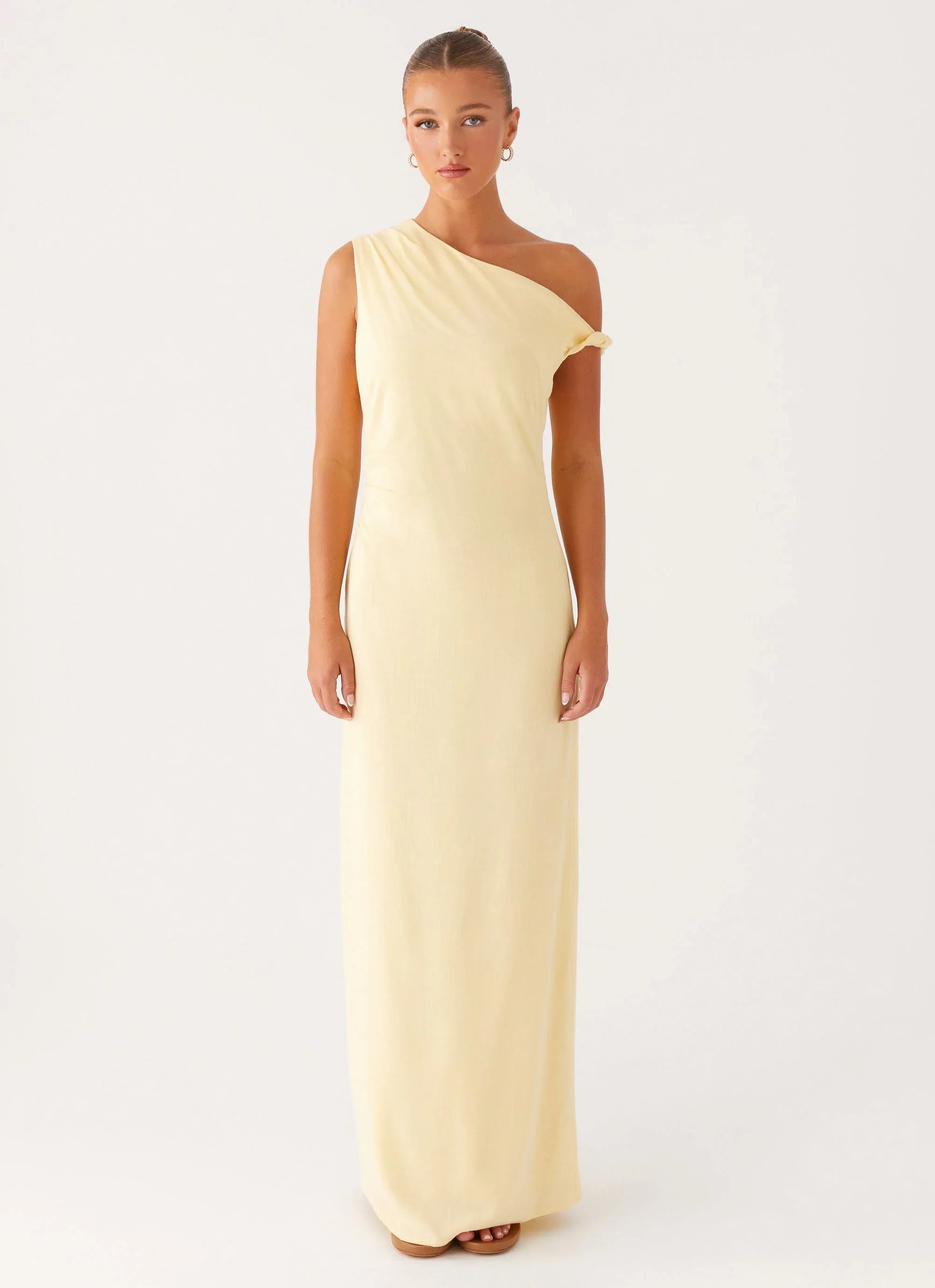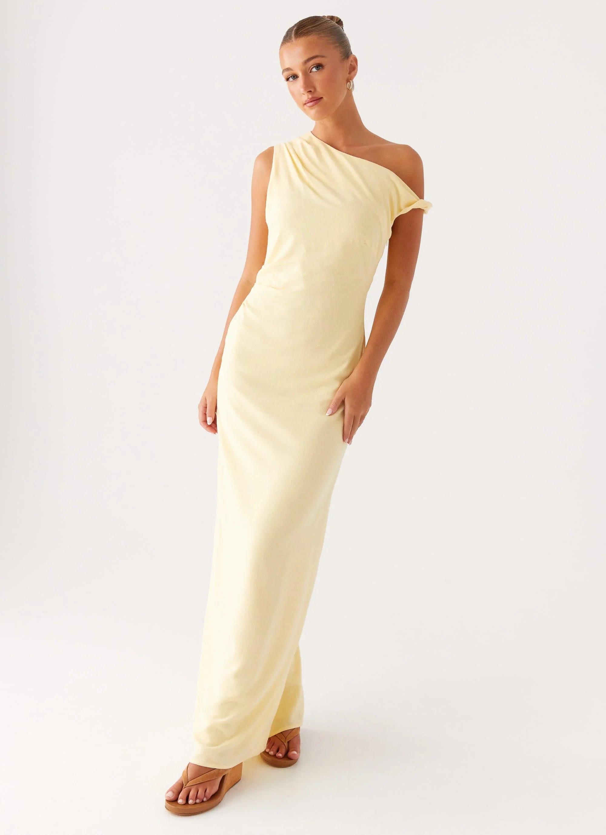 The Mckenna Maxi Dress is sleek and sophisticated with a touch of modern edge. Featuring a side invisible zipper for a seamless fit and ruched shoulder seams for added texture, it creates a flattering, structured silhouette.
