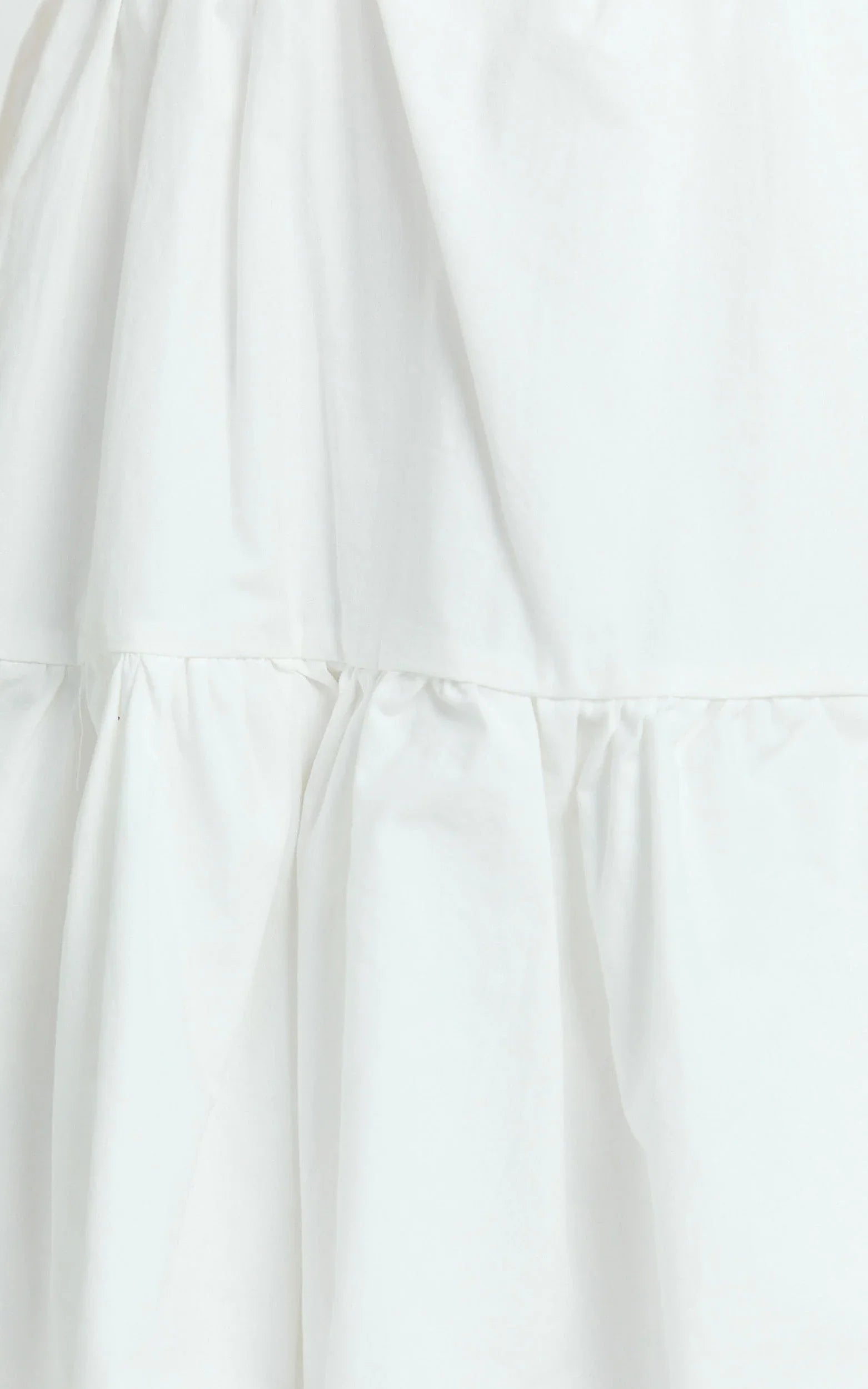 Make a statement in the Miles Mini Dress — a ruffle sleeve, tiered dress that redefines casual elegance. Crafted from breezy cotton poplin, this dress is a summer staple that promises both comfort and style. With a charming square neckline and sleeveless design, it's a modern take on the classic fit & flare silhouette that flatters every figure.
