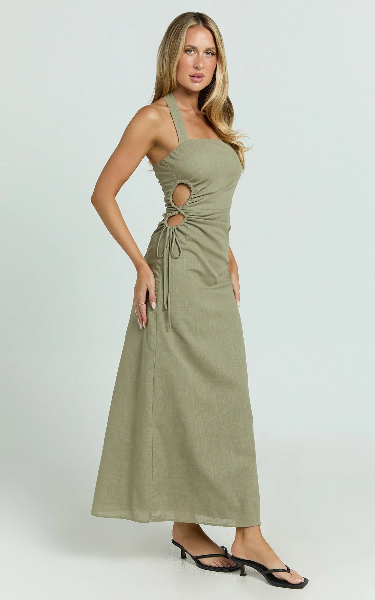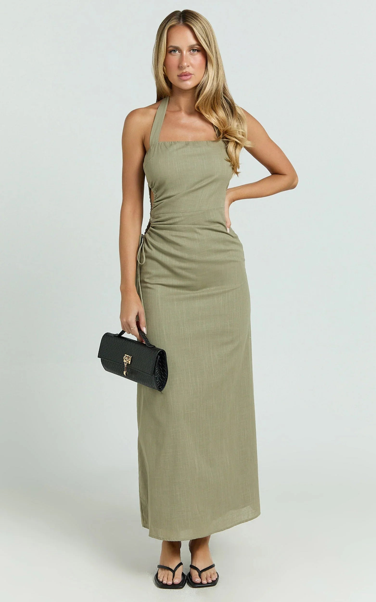 The ruched side creates a snatched silhouette, while the leg-skimming length keeps it sleek for date nights, rooftop drinks, and every RSVP in between. Y2K fashion vibes meet modern minimalism in this green showstopper, perfect for slipping into when you want that effortless “Try on and go” moment.