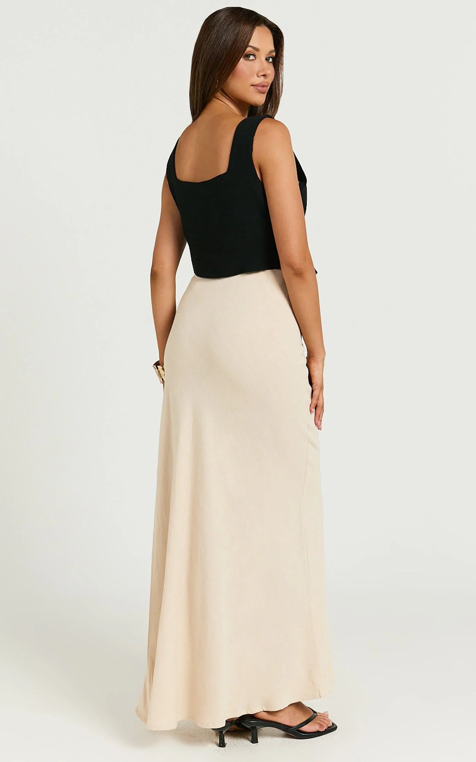 Make a statement in the Olivia Maxi Skirt, the ultimate blend of casual elegance and effortless style for your wardrobe. Crafted with a divine linen-look fabric that whispers breezy afternoons and sun-drenched moments, this mid-waisted gem is tailored to flatter. Its bias cut ensures the skirt drapes beautifully over your curves, creating a silhouette that dances between playful and sophisticated.