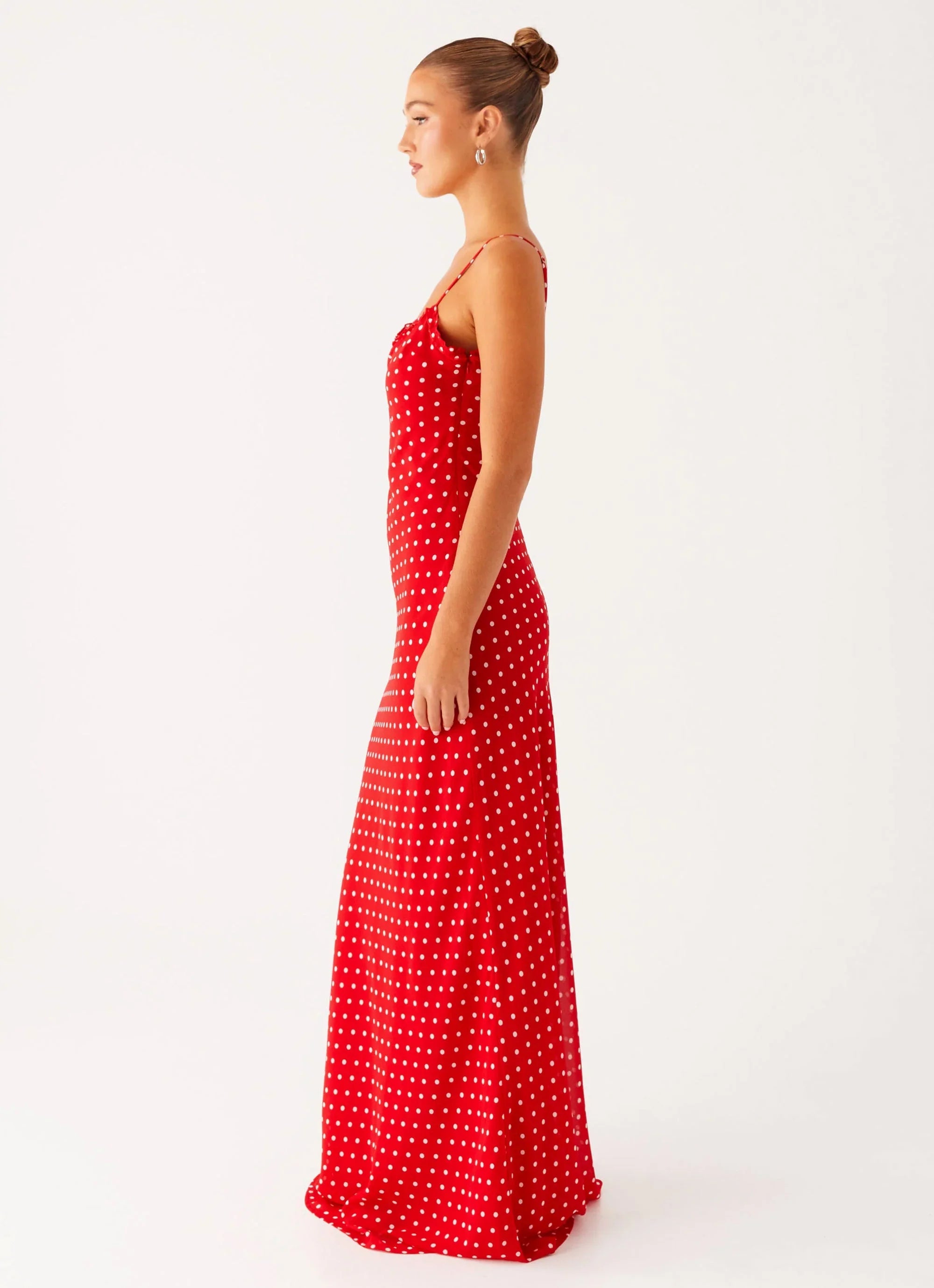 Made for golden hour glows and late-night heat, the Pareo Maxi Dress in Red Polka Dot is all flowing elegance. With a flattering bias cut, full lining, and a sweeping maxi length, it’s the kind of dress that lingers in their memory long after you’ve left.