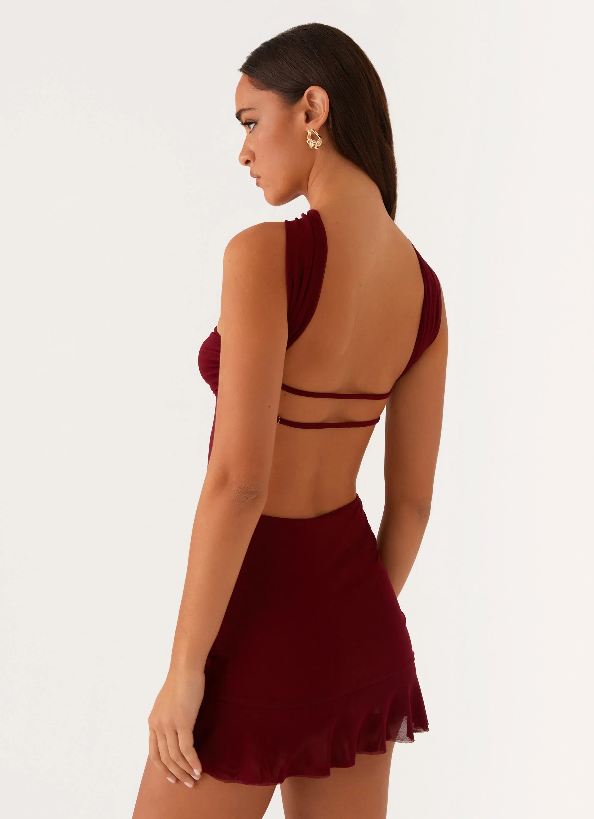 The Pari Open Back Mini Dress exudes flirty charm with its captivating open back design. This mini-length dress features a flared hem that moves gracefully with you, creating a playful silhouette.