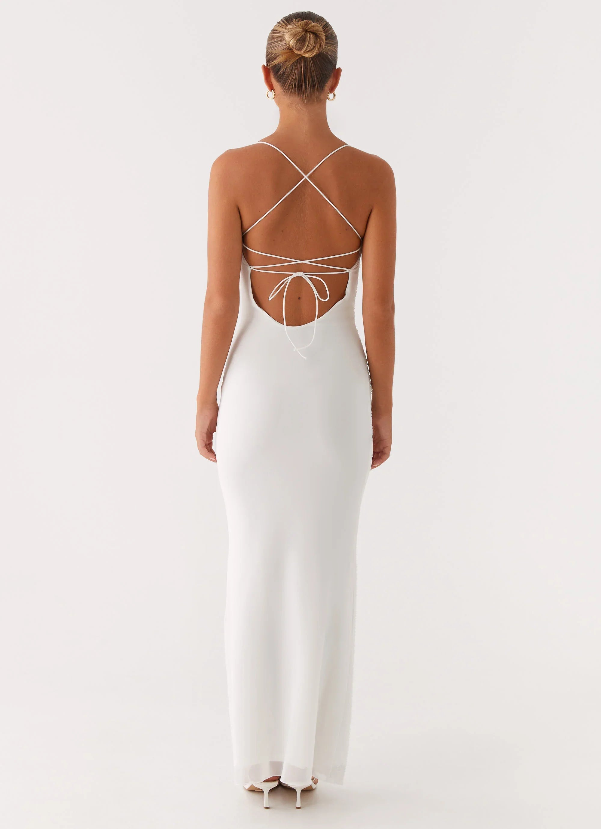 The Paxton Beaded Maxi Dress is a stunning combination of sophistication and sparkle. Featuring a sleek straight neckline and a ruched bodice that flatters every curve, this dress is adorned with delicate beading that adds just the right amount of glamour. Perfect for making an unforgettable entrance.