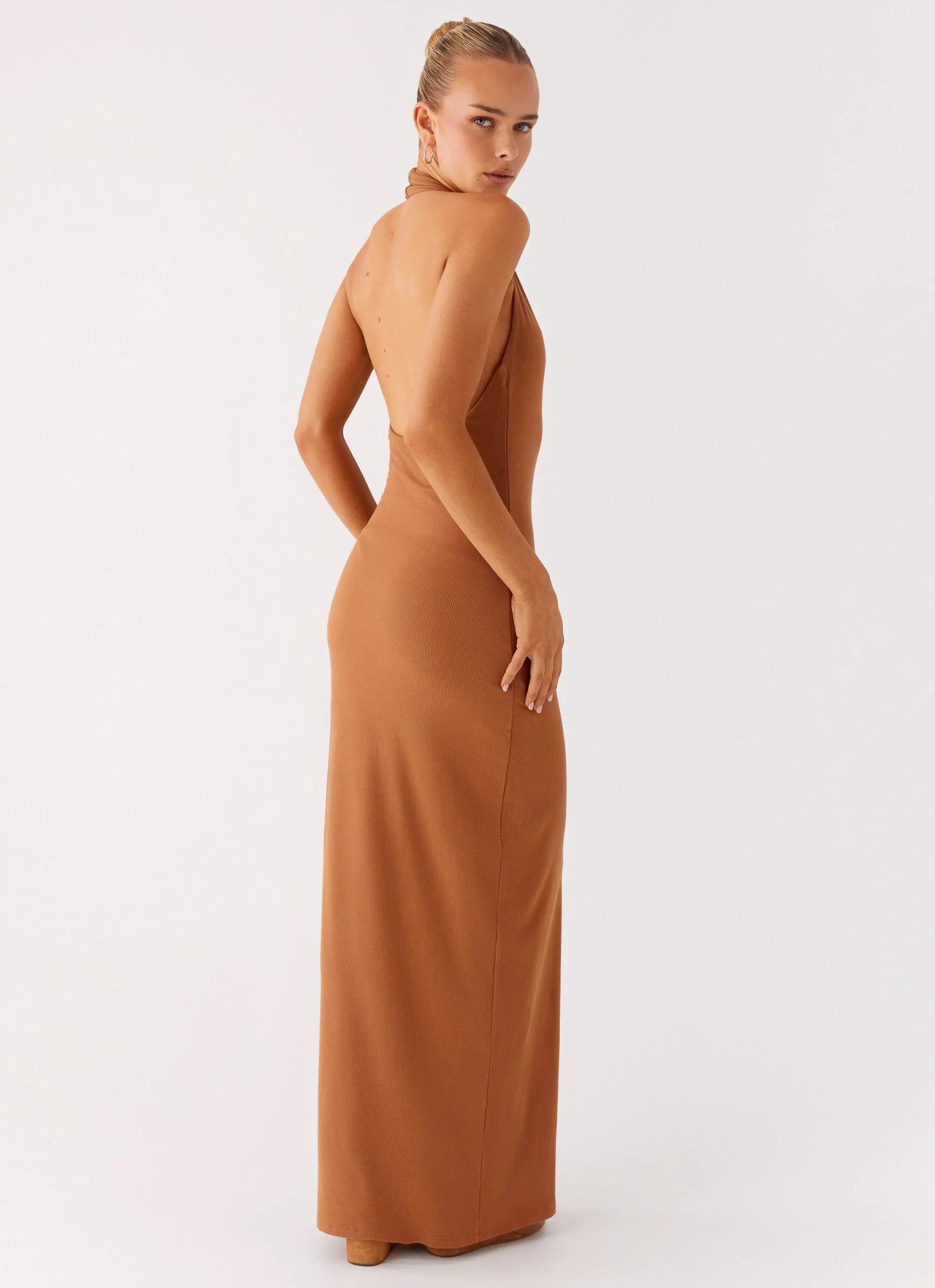 The Plunge For You Maxi Dress is made to turn heads after dark. Featuring a plunging V halter neckline and low back, this unlined maxi is crafted from stretch knit fabric that hugs the body in all the right places.