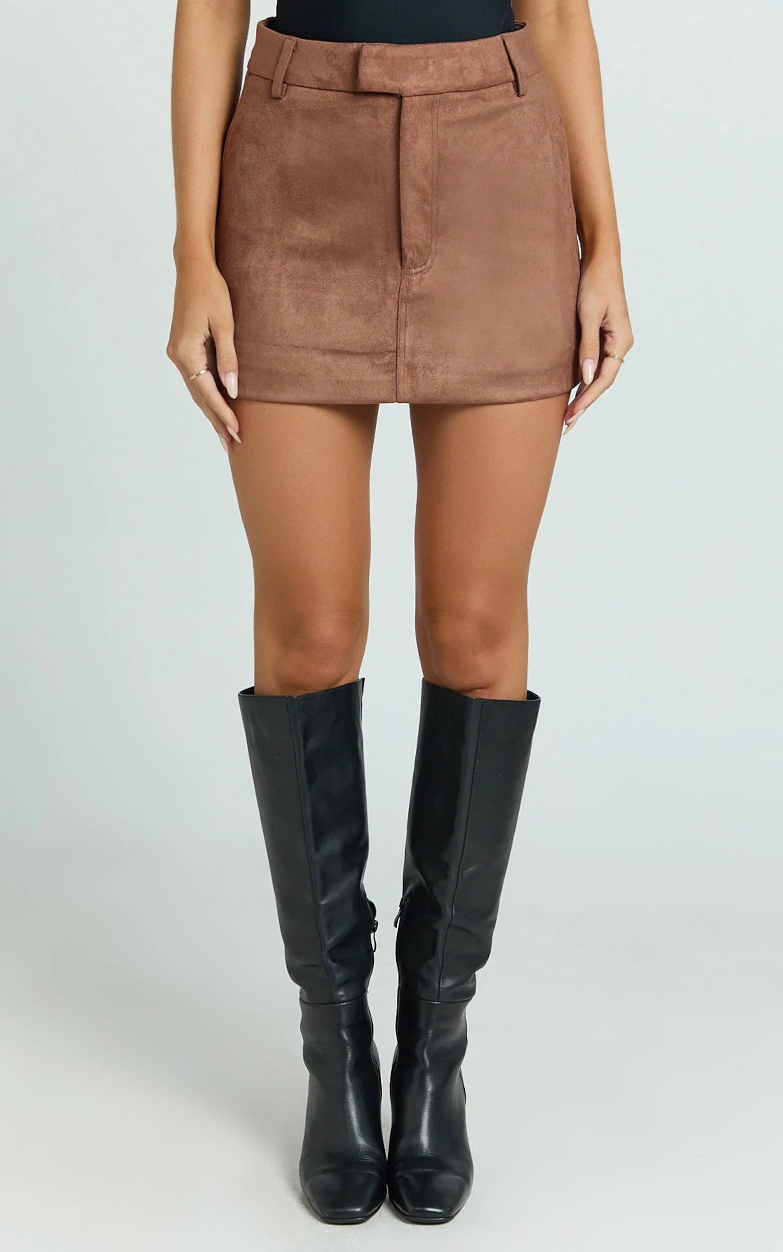 The Priscilla Mini Skirt in Brown Tan is the perfect blend of sleek, polished style and everyday wearability. Designed with a flattering mid-waist fit, this mini skirt hugs your curves and pairs seamlessly with both casual basics and more statement layers. The clean lines and leg-lengthening hem make it perfect for day-to-night dressing, while the soft faux suede fabric adds a touch of luxury. Style it with a fitted tee and minimalist sandals for a laid-back brunch look, then switch to samba sneakers and metallic sunglasses for a cool, city vibe. Whether paired with Paillettes or layered with a barn jacket, this versatile piece is a must-have in your skirt rotation, offering effortless chic and timeless appeal.