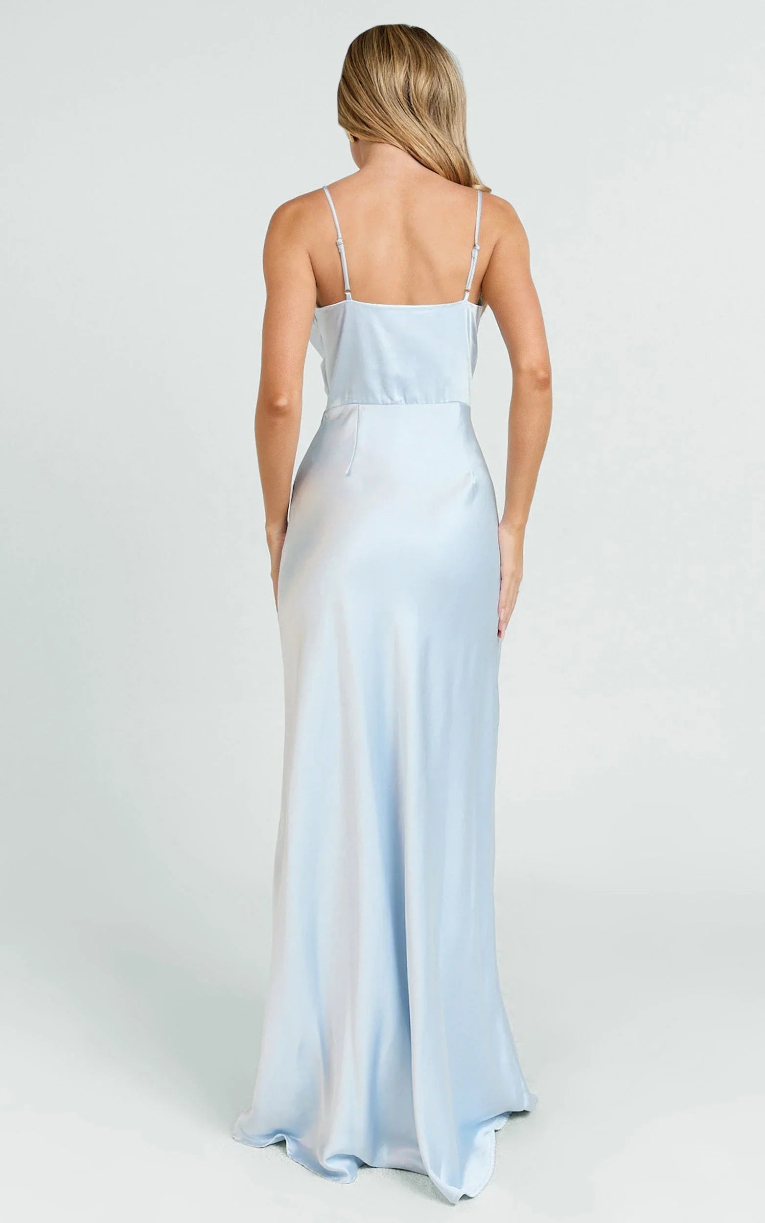 Quincy Maxi Dress - Satin Slip Dress In Sky Blue serves major sex appeal without trying too hard, while the delicate vibe taps into bowcore-inspired romance when styled with dainty pendant necklaces and oversized sunglasses for a statement finish. Add flip-flops for a beach-to-bar switch or dress it up with strappy heels, either way, this maxi turns heads and photographs like a dream.