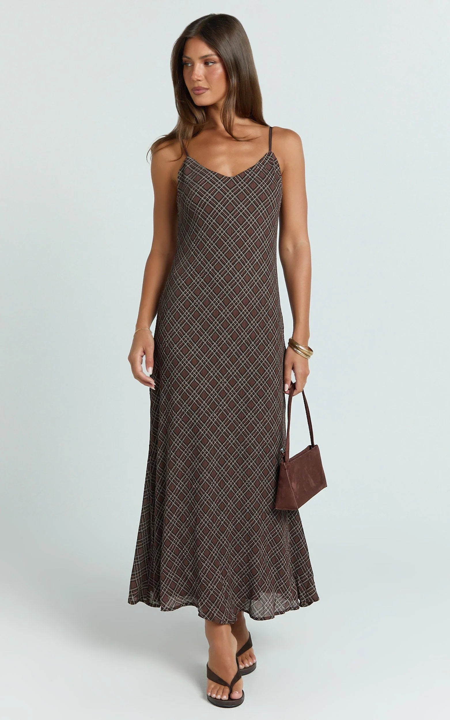 Revie Midi Dress brings statement ease without the fuss, style it with delicate jewellery, strappy heels and a clutch for after-dark polish, or add an oversized blazer for cool-girl contrast. A go-to you’ll wear on repeat, this brown midi slip is your new neutral that plays nice with every look.