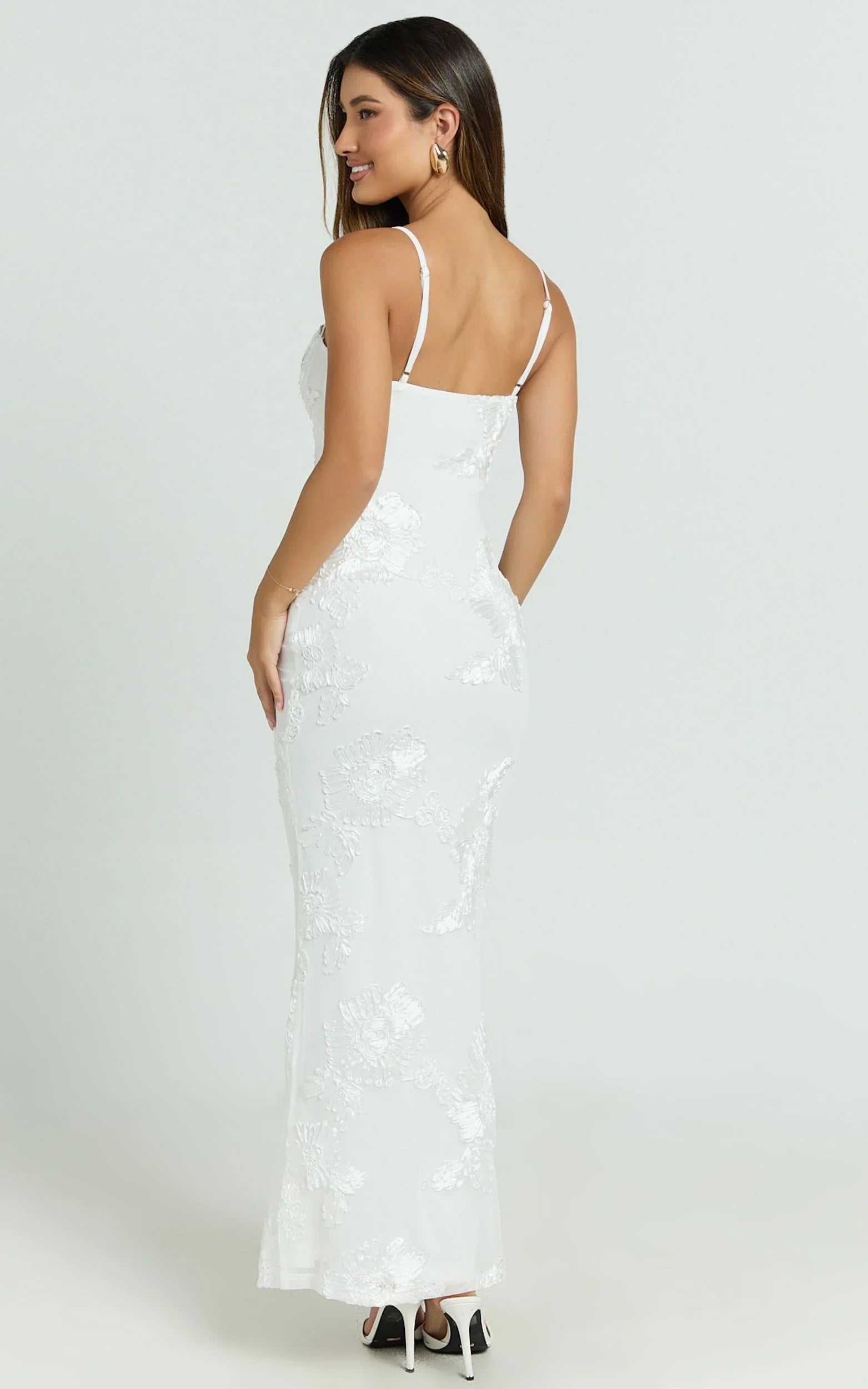 Rory Maxi Dress brings the drama in a crisp White palette that feels Timeless and ultra-versatile across seasons. Style with delicate strappy heels, a micro top-handle bag, and fine hoop earrings for an occasion-ready fit, or switch to platform sandals and a cropped blazer for an edge. Add to cart now and watch your Dresses lineup go from cute to unforgettable.