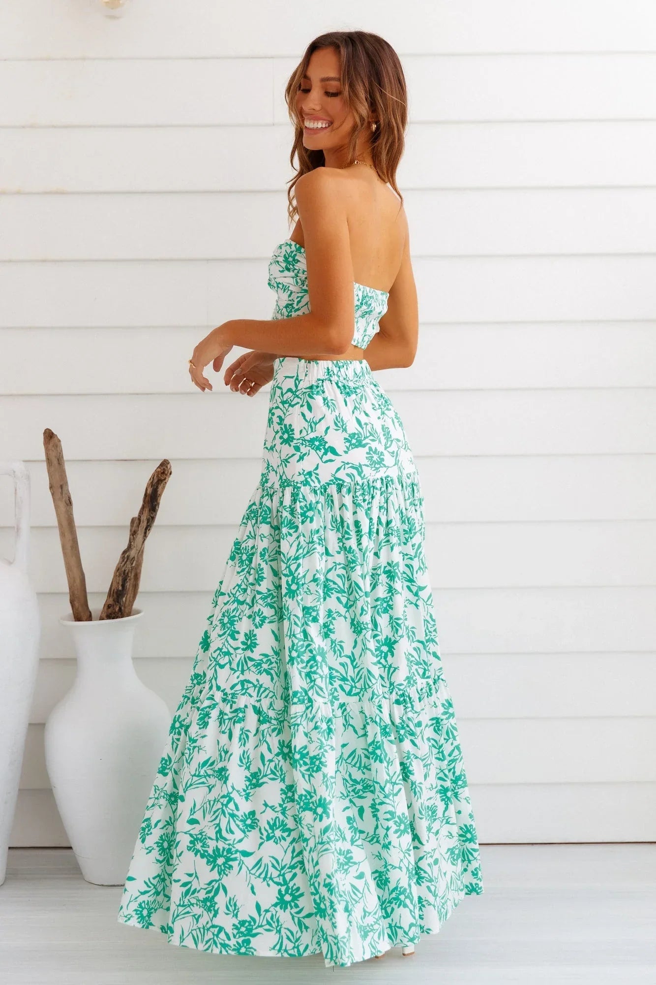 Flaunt yourself at all your next event with this stunning strapless crop top. Featuring a twist in the bust, this is a major must-have. Pair this with the matching skirt ?and white dainty heels.?