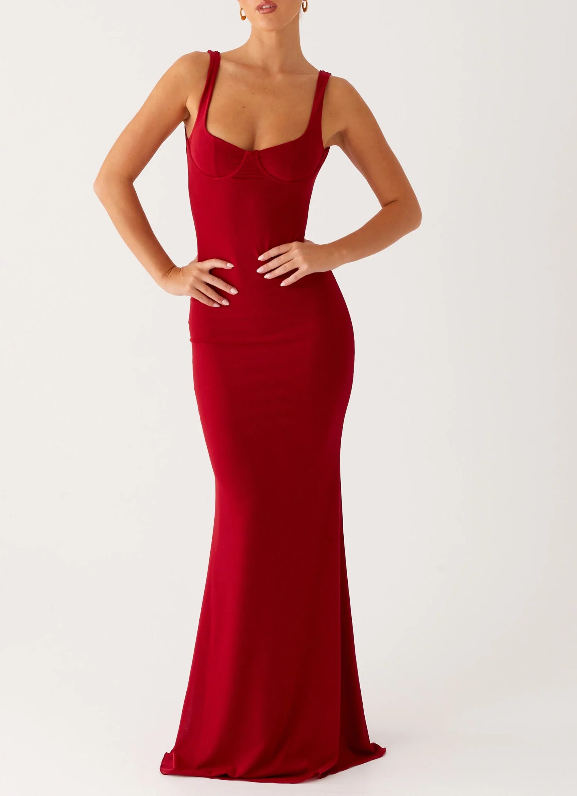 Elegance that lasts all night — the Safiya Maxi Dress in Maroon is made to shine. With a sweetheart neckline, thick straps, and a sweeping maxi length, this dress hugs your curves and flows with you into the night.