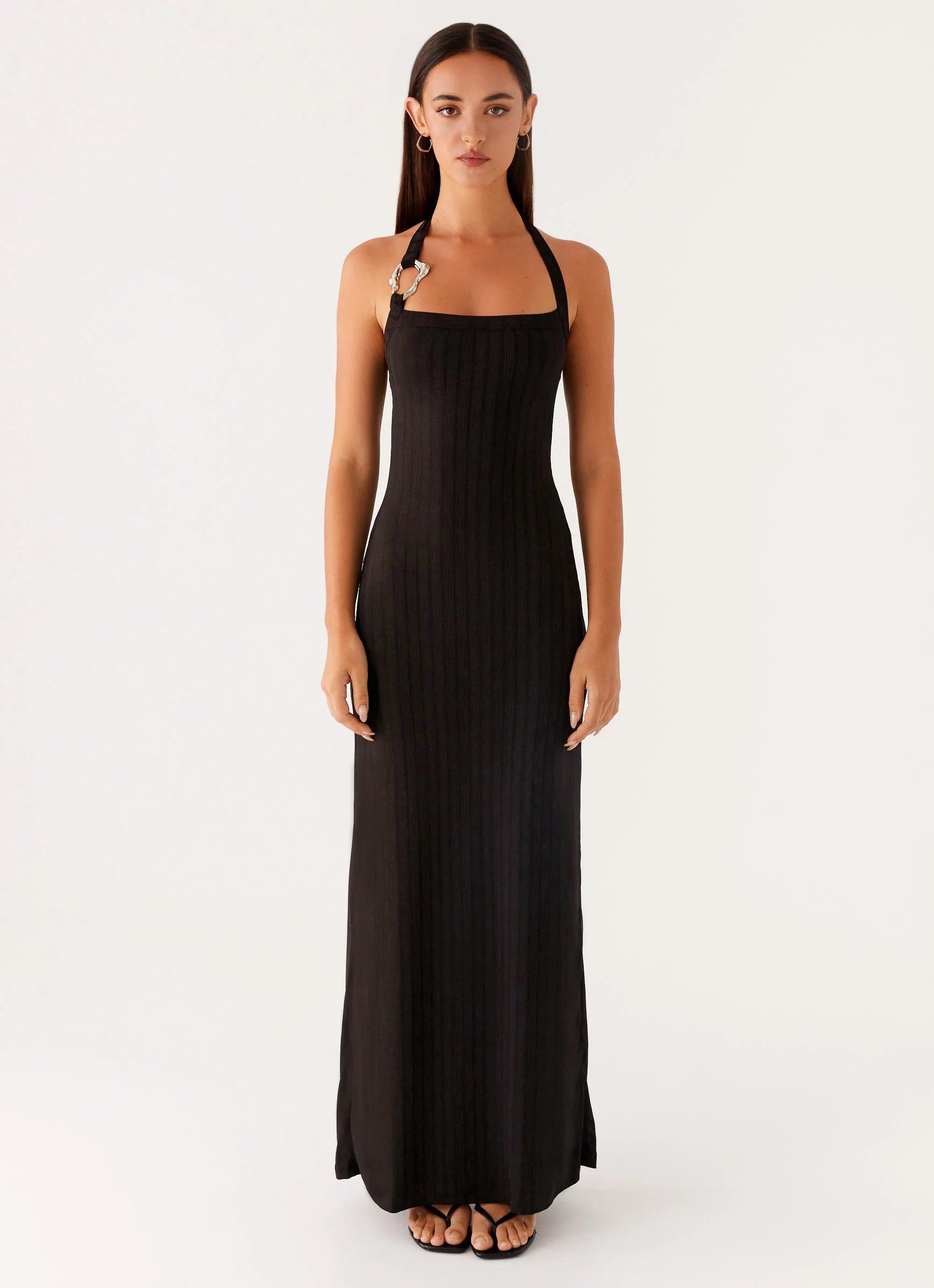 Sculpted to perfection. The Selene Maxi Dress features a sharp square neckline and a bodycon fit that hugs your curves from every angle. Sleek, bold, and made to make an unforgettable entrance, it's your go-to for nights that demand attention.