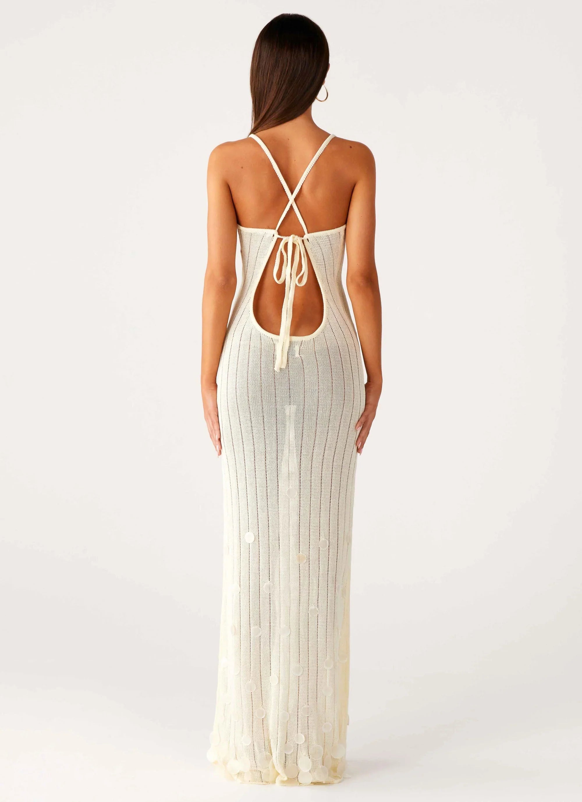 The Siren Song Crochet Maxi Dress is made for golden hour to after dark. Featuring a delicate crochet knit with cut-out details and bead accents, this underlined piece is finished with tie straps and a flattering silhouette that skims the body.