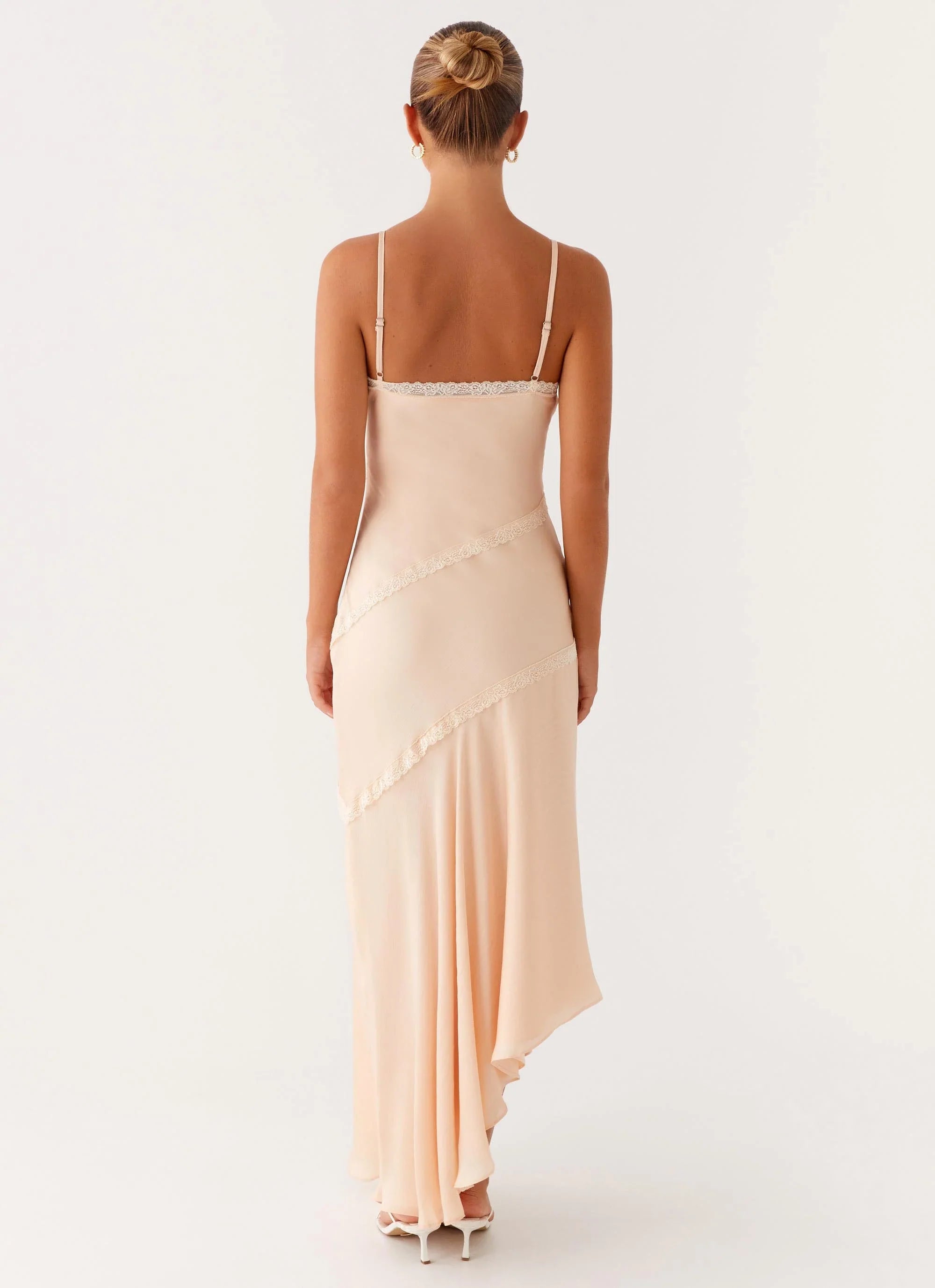 - Asymmetrical waistline drop and hemline
