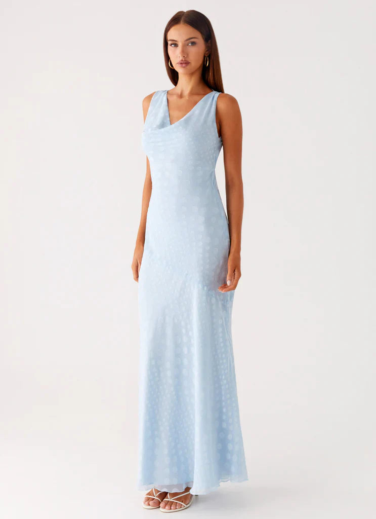 The Sundance Chiffon Maxi Dress is effortlessly elegant with a cowl neckline and low back detailing. Designed in textured chiffon with a bias cut, this maxi dress drapes beautifully and features a back tie with thin adjustable straps for the perfect fit. Fully lined for comfort, it slips on easily for a chic, flowing silhouette.