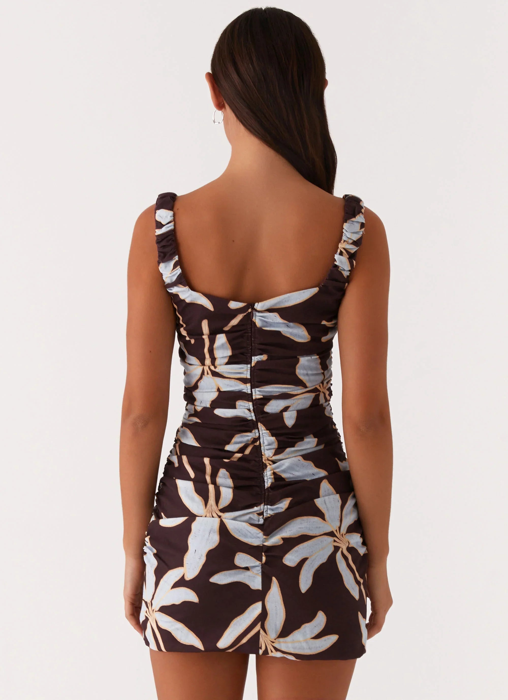 Make a statement with the Sweet Melody Ruched Mini Dress. Designed with a chic square neckline and flattering ruched details, this mini-length dress features a playful front tie that adds a touch of charm. Perfect for balmy nights and vibrant outings