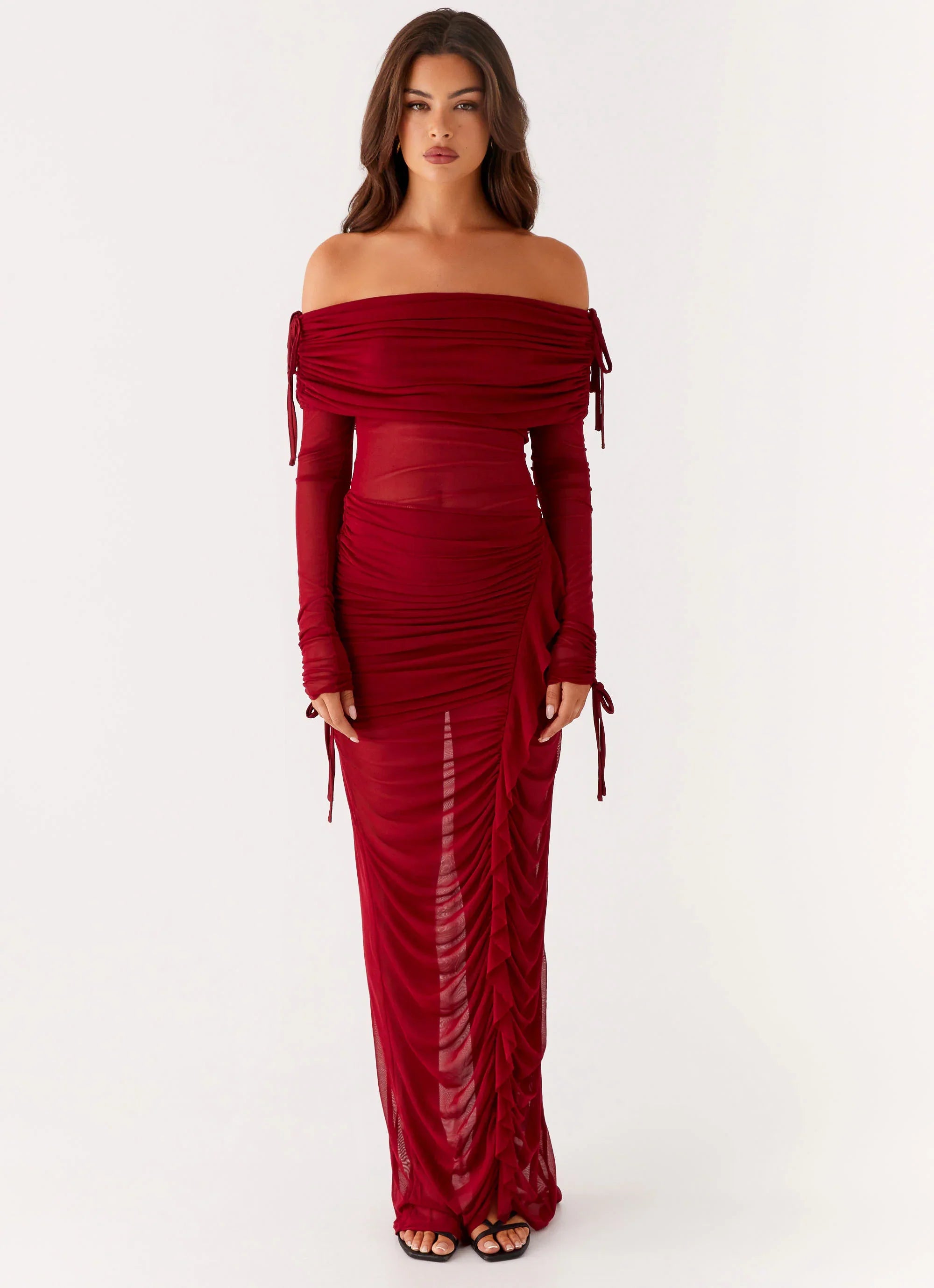 The Teala Mesh Maxi Dress is the epitome of effortless allure. Featuring full-length sleeves and sheer mesh fabric, it drapes elegantly for a look that’s both bold and sophisticated. Perfect for golden skies and after-dark moments, this dress was made to captivate.