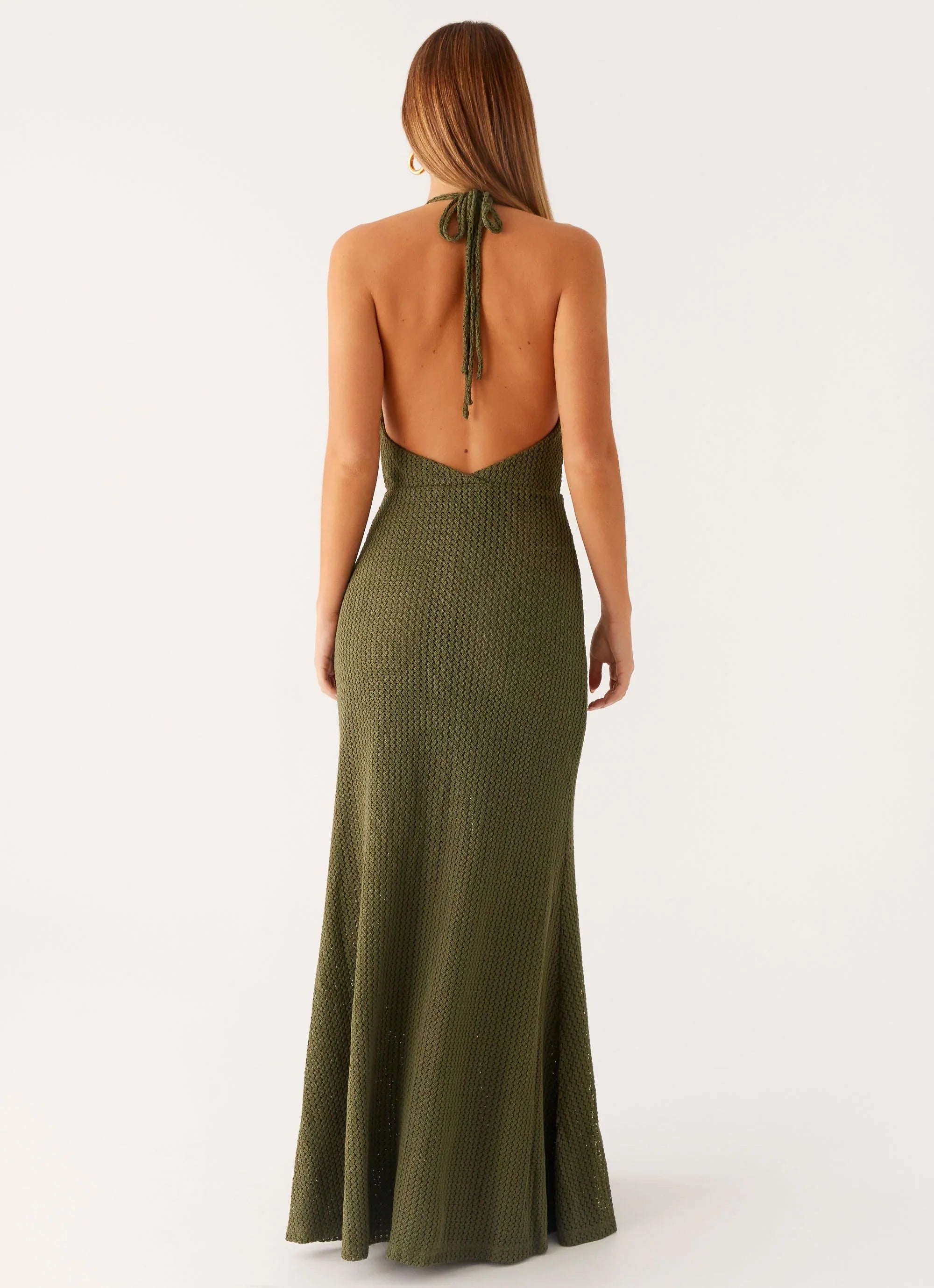 The Thora Maxi Dress is your new go-to for balmy nights. Made from stretch knit with a semi-sheer finish, it features a plunging V neckline, thin neck tie straps, and an open back. Self-lined for comfort, this maxi is made to move with you from golden hour to after dark.