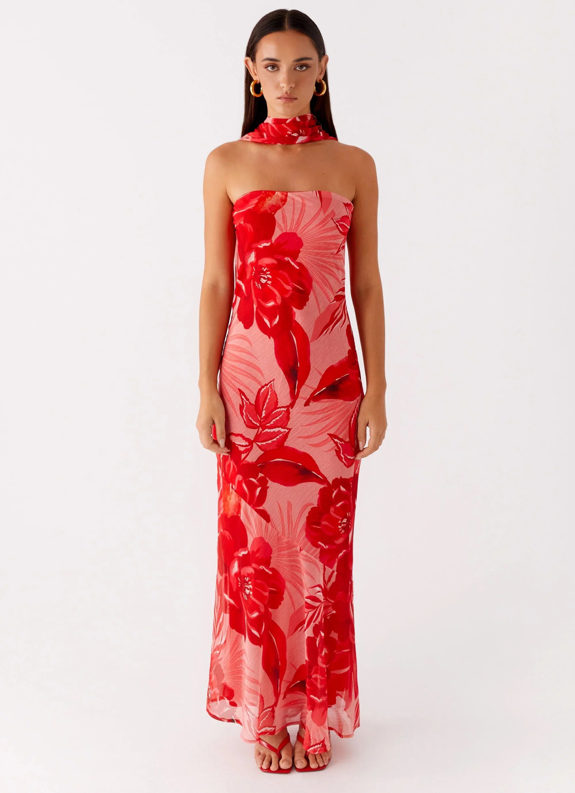 Made for golden hours that slip into starlit nights. The Under The Pagoda Maxi Dress features a sleek strapless neckline and a flowing, fully lined silhouette that moves with every warm breeze. Wrapped in our exclusive Sicily Sunsets print, it’s your ticket to balmy nights, rooftop soirees, and unforgettable escapes.