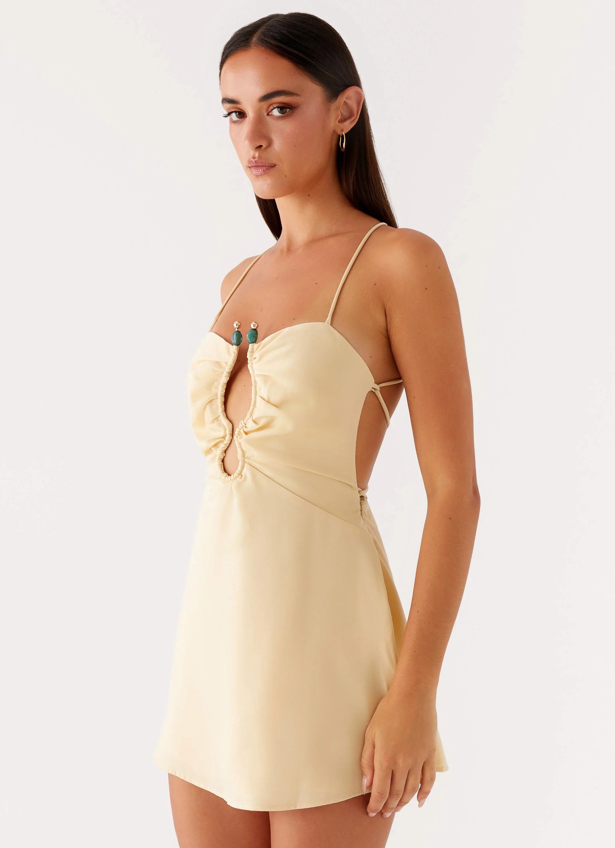 The Zuma Mini Dress is edgy and captivating, designed to turn heads. Featuring a bold front cutout and metal accents, it blends daring details with a sleek silhouette.